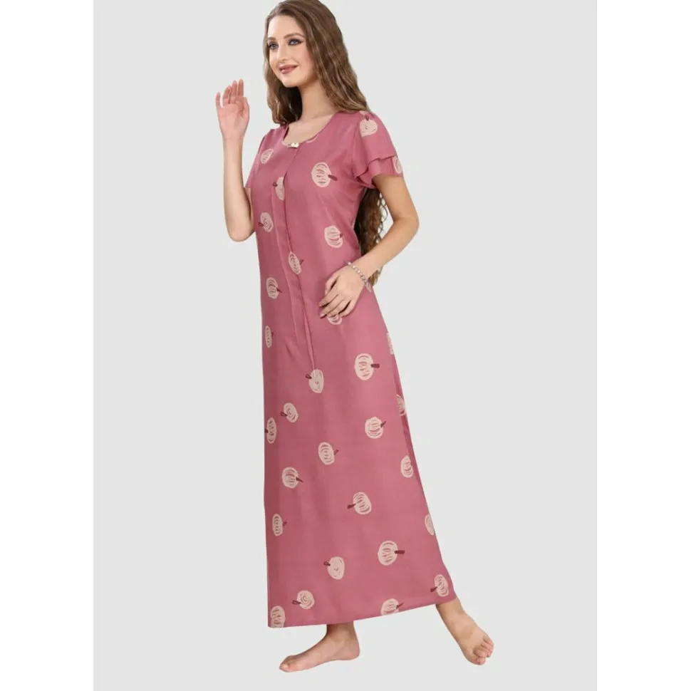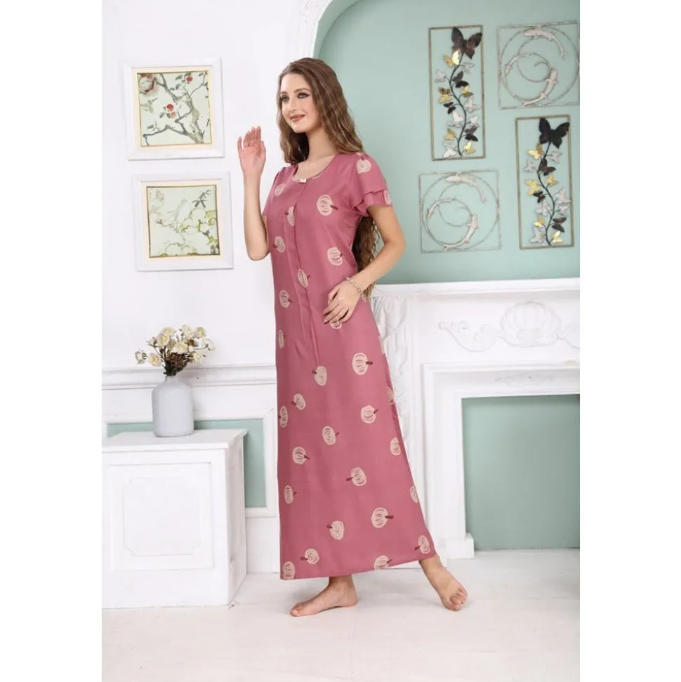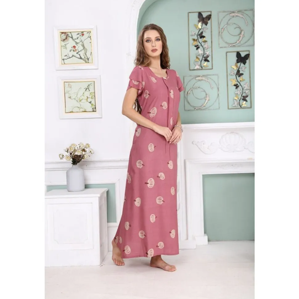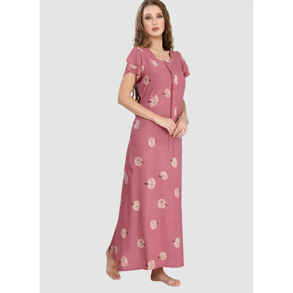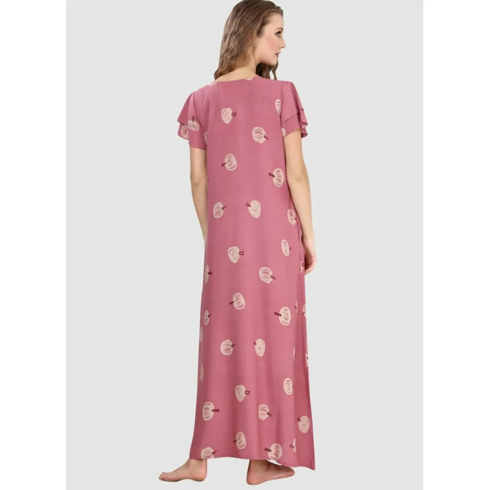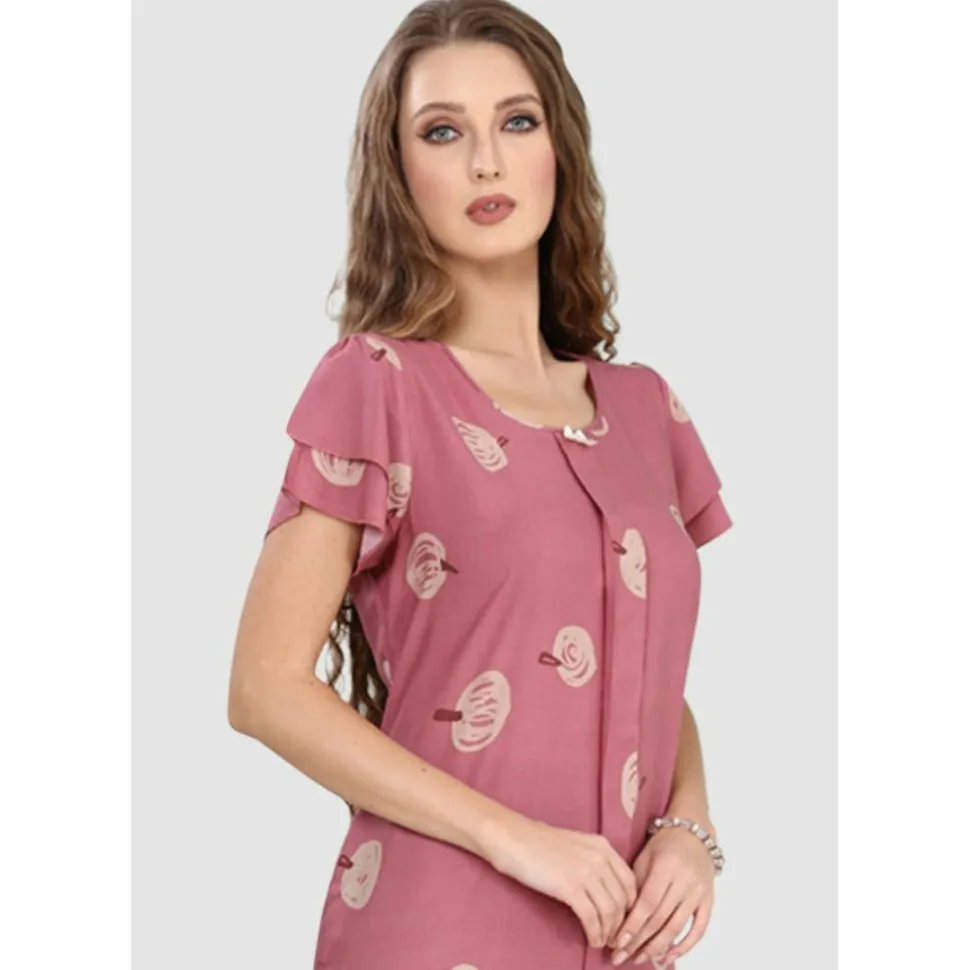 Buy 100% Rayon Short Flutter Sleeve Long Nighty-Rose