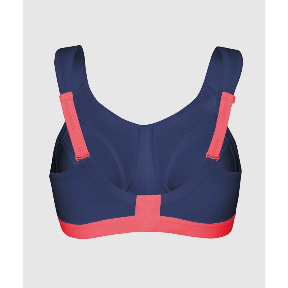 The bestselling Active D+ Classic Support sports bra from Shock Absorber provides a solid and secure fit for full bust women up to a H-cup. It is a classic design with a rounded silhouette and wide, padded, adjustable non-slip straps. The moulded cups lift and encapsulate the bust to recenter and support the breasts whilst the super soft microfiber inner panel anchors the bra to the body, reducing friction around the ribcage. It is made out of moisture-wicking, high-performance fabrics.
