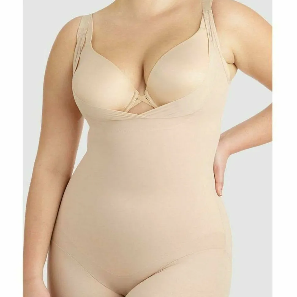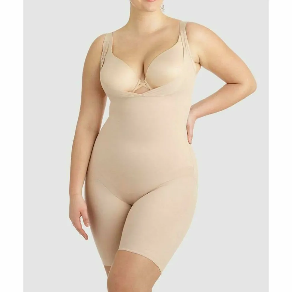 Get a trimmer figure from your midriff down to your thighs with Miraclesuit’s Flexible Fit Long Leg Singlette. This extra-firm control body shaper has shoulder straps to prevent it from rolling down, but leaves you free to pair it with any bra.
