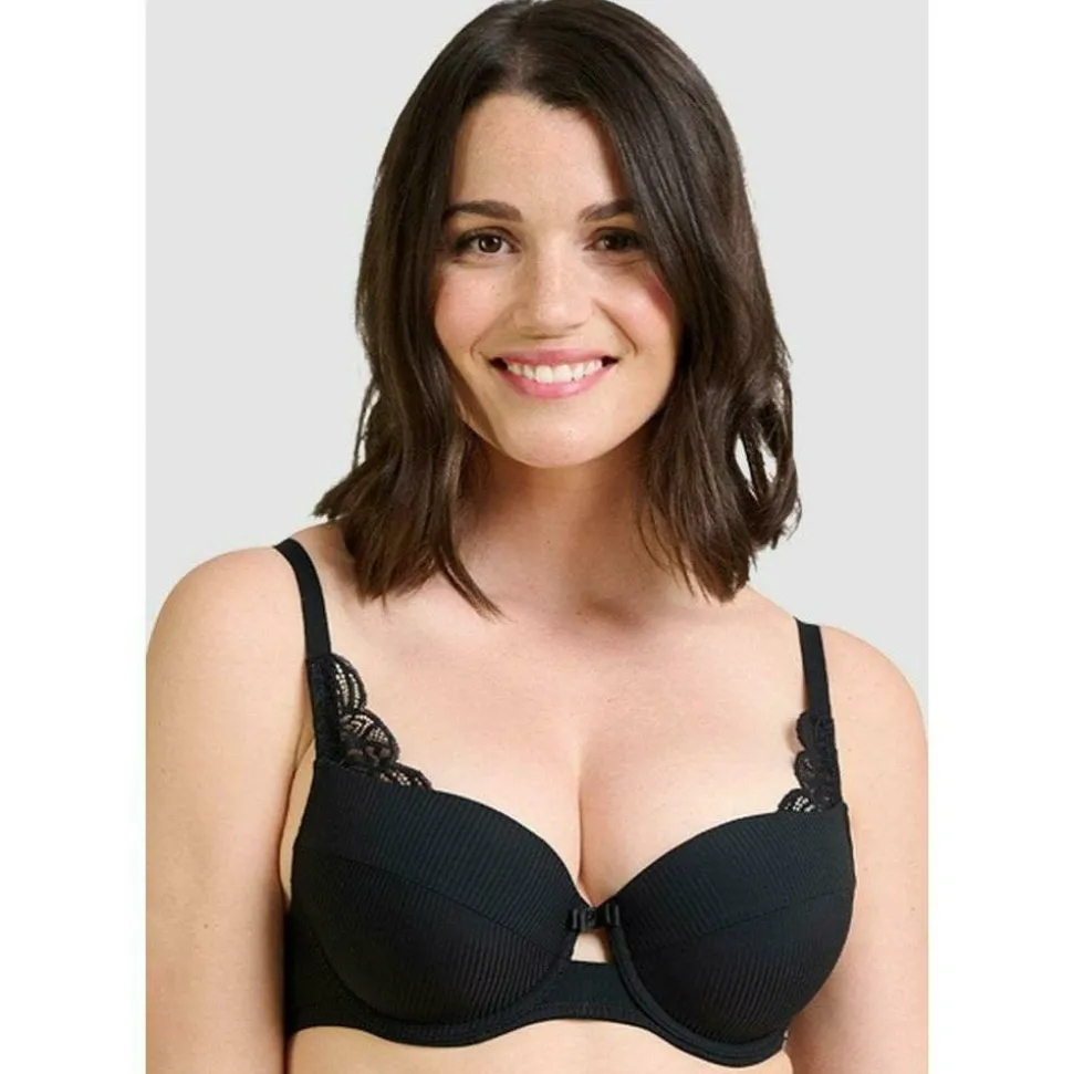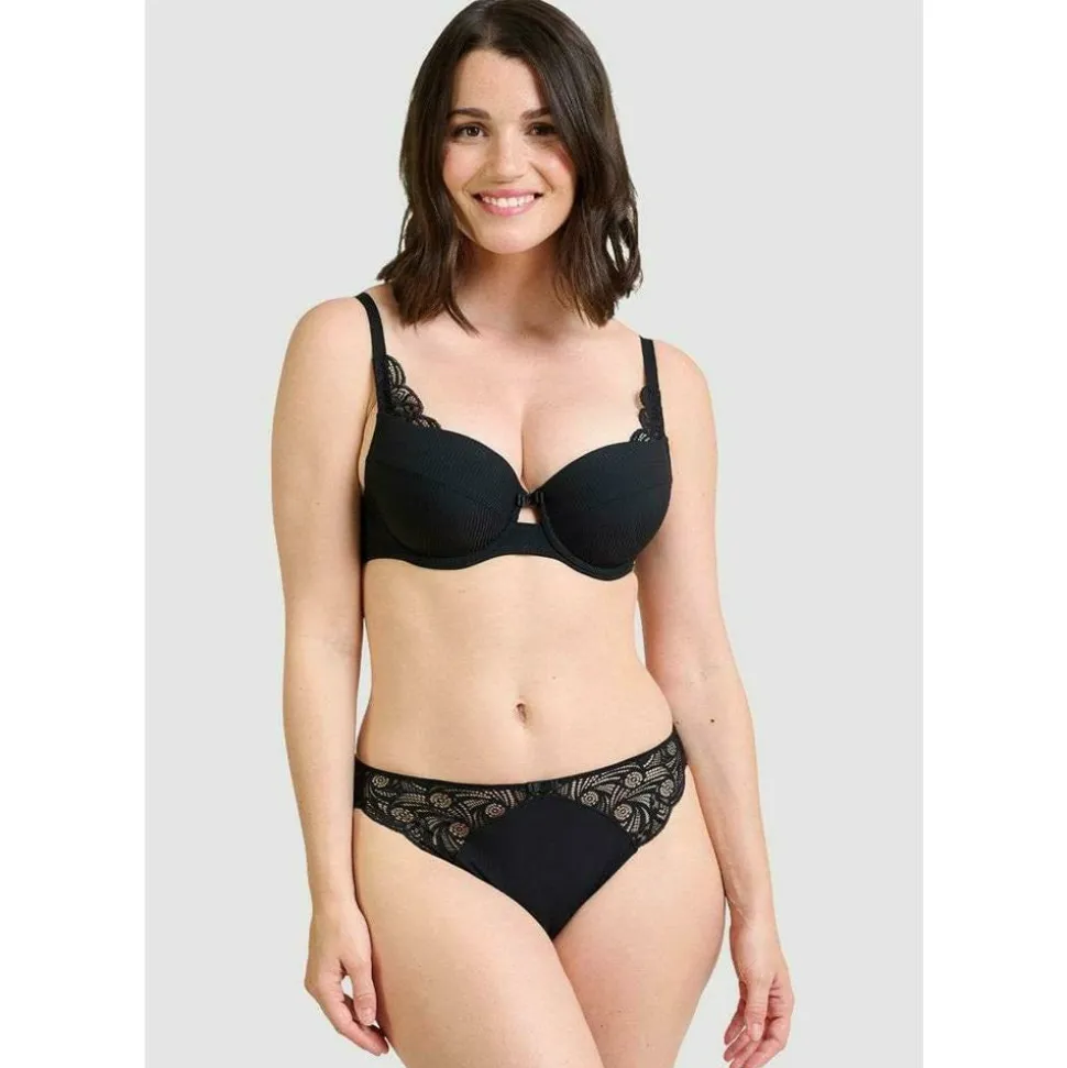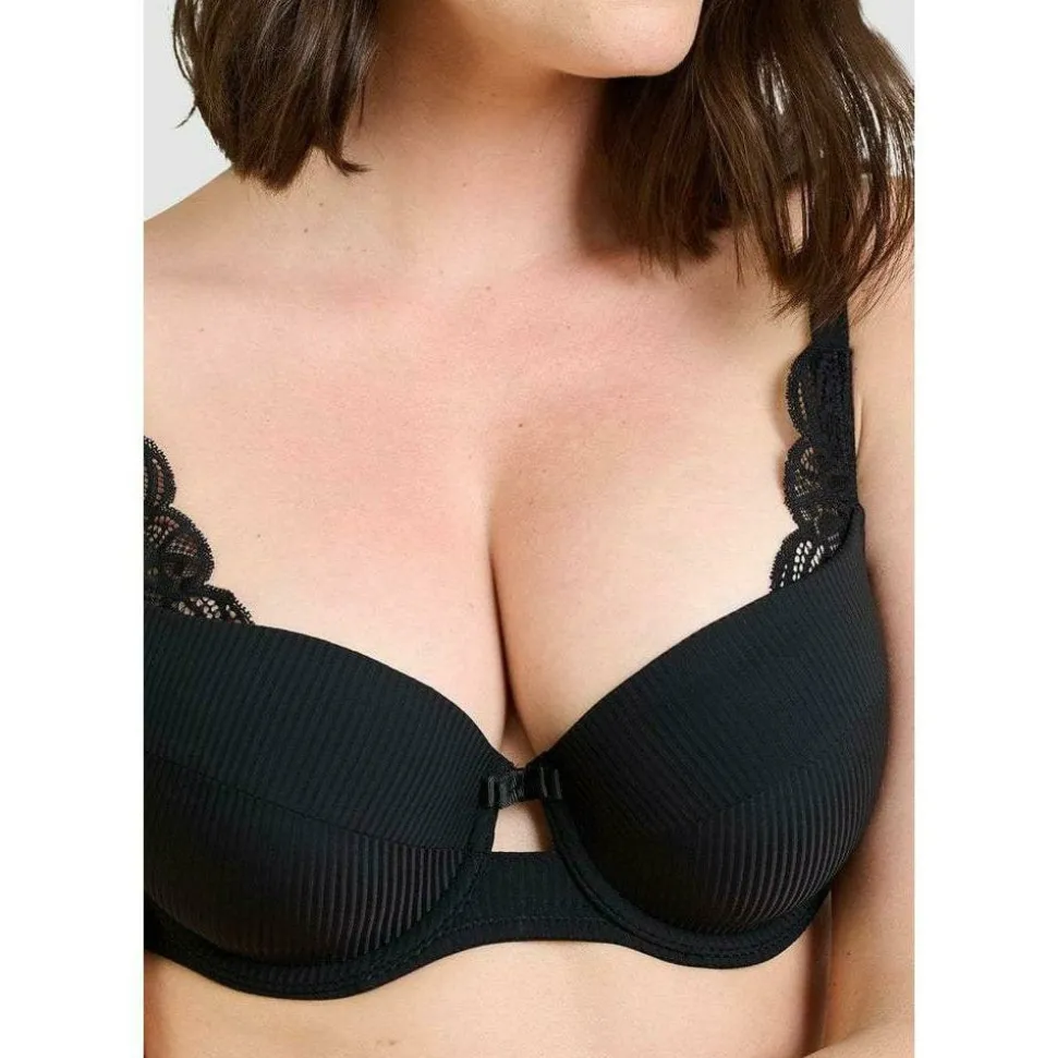 This underwired, padded bra will enhance your bust while also bringing a touch of French elegance to your lingerie drawer. It’s a half cup bra (or a demi cup bra as they say in France) which flaunts your cleavage, while still providing all the support and comfort you need from an everyday piece. It’s made from microfibre with a subtle striped pattern, and decorated with a cut-out detail and scalloped lace trims.