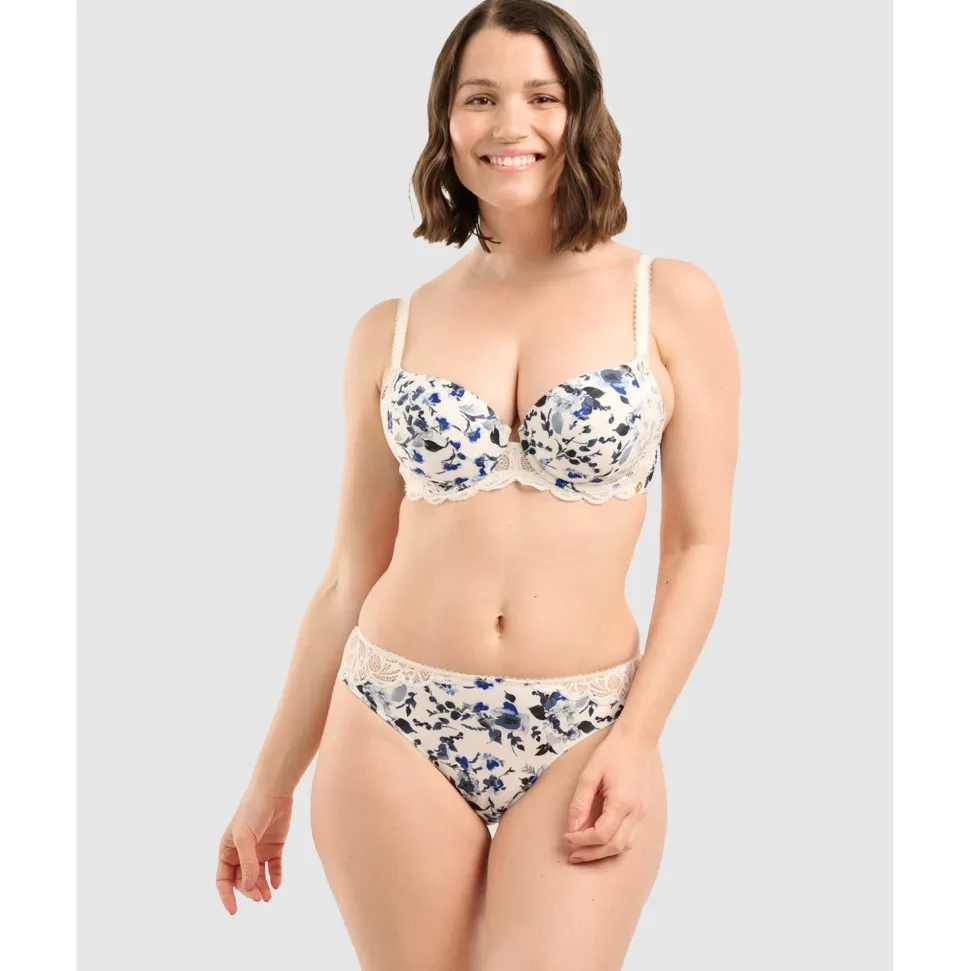 Give your curves a boost with this padded bra, featuring moulded demi cups that lift your cleavage and create added volume. The extra-stylish fashion version of Sans Complexe’s bestselling Ariane demi bra, Ariane Fantaisy is a printed bra in soft, satin-finish microfibre and scalloped lace, with a gold-tone ‘SC’ charm at one side.