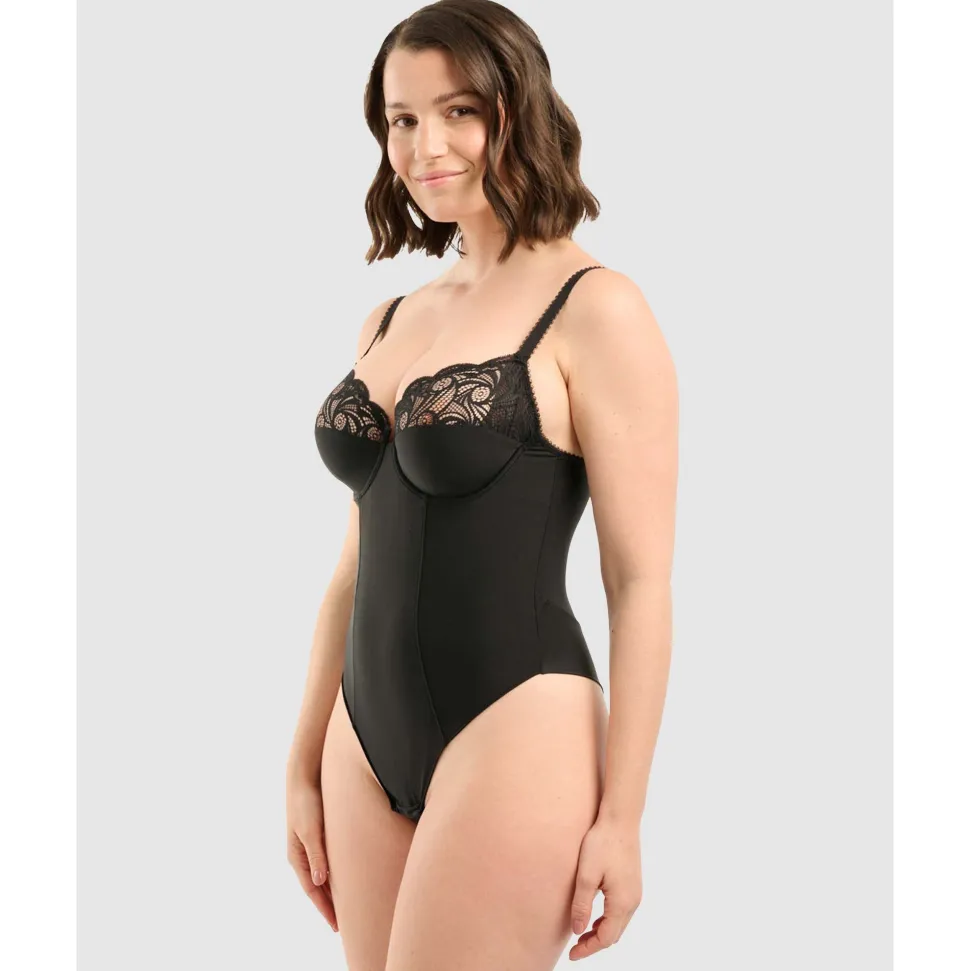 Underwired bodysuit with supportive, 3-part cups