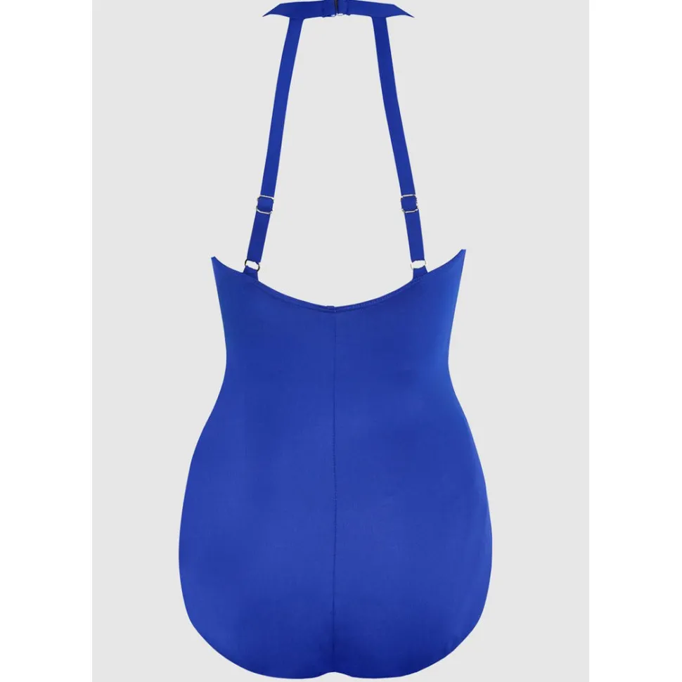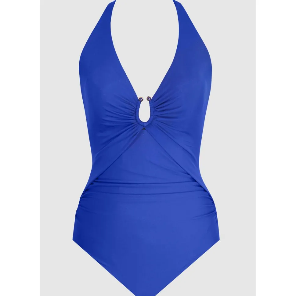 Giving you a modern and minimalist twist on poolside luxury, this tummy control swimsuit features a faux halter neck design which has two narrow straps connecting it at the back, to take the weight off of your neck. Alongside firm-fitting curve control fabric, the design flatters your figure through careful draping and gathering, culminating in a chic horseshoe detail which frames the centre of the deep plunge neckline.