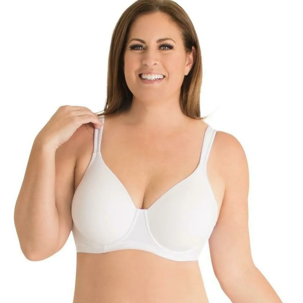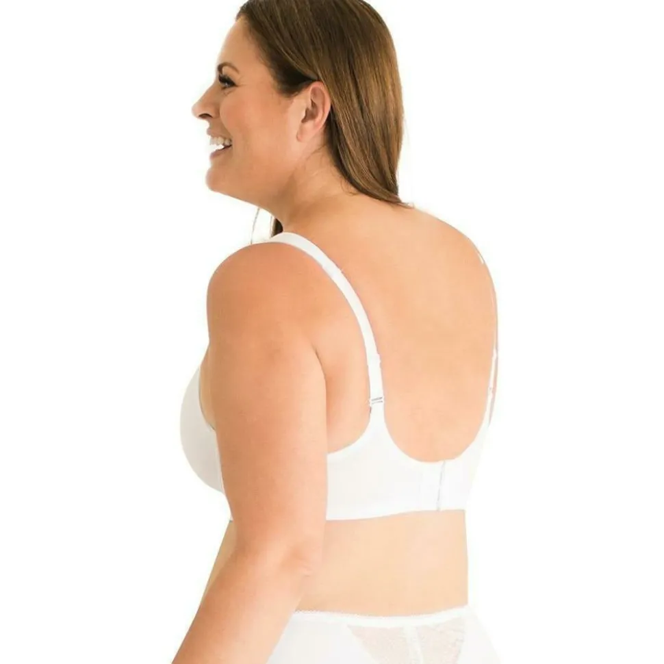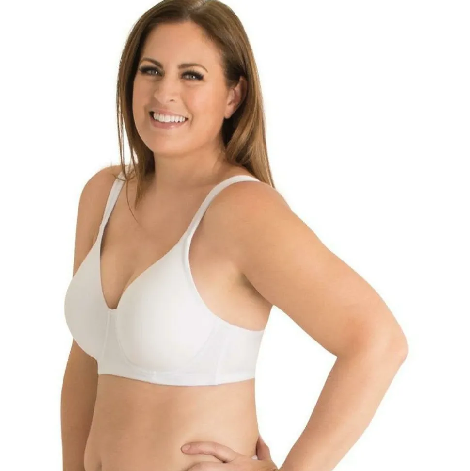 The wirefree Brigitte is a supportive plus size bra that delivers a completely smooth look under clothing. No bulky lines, and definitely no spilling out! The padded, full coverage cups are completely seamfree, and the band is lined to provide a smoothing effect at the sides and back. Leading Lady has finished the bra with padded straps and a U-shaped back, for exquisitely-comfortable support.