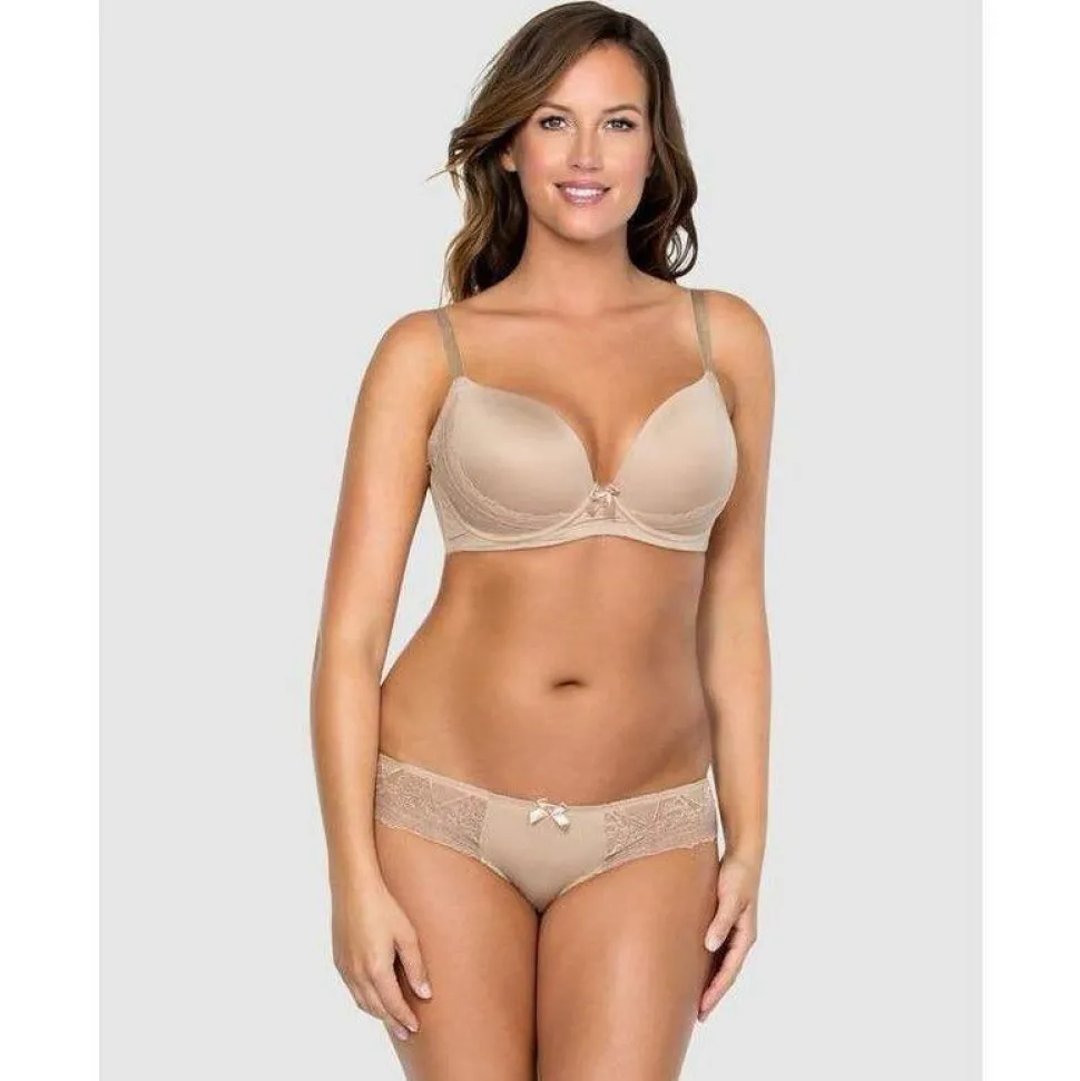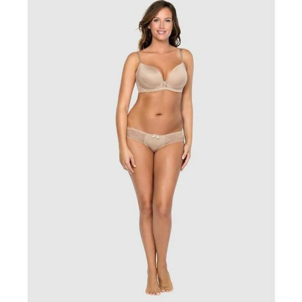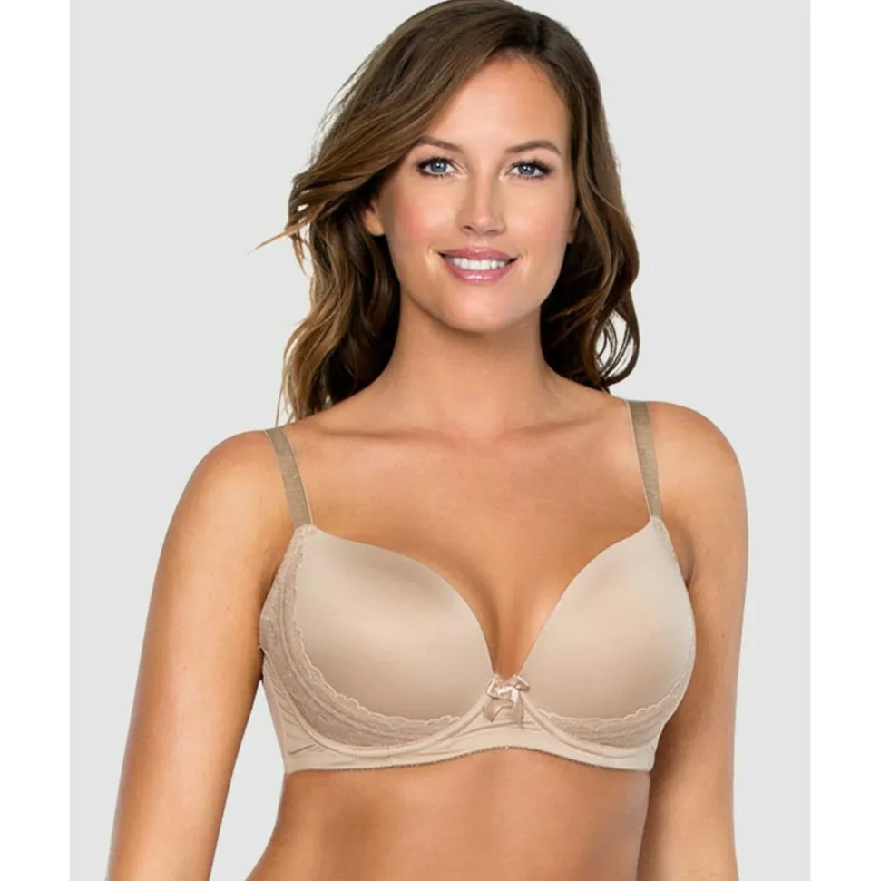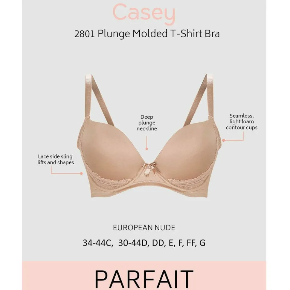 Parfait’s Casey Contour Plunge Bra, which has smooth, foam-lined cups to be invisible under clothing. Not just there for decoration, the pretty lace side slings also enhance the support for fuller busts.