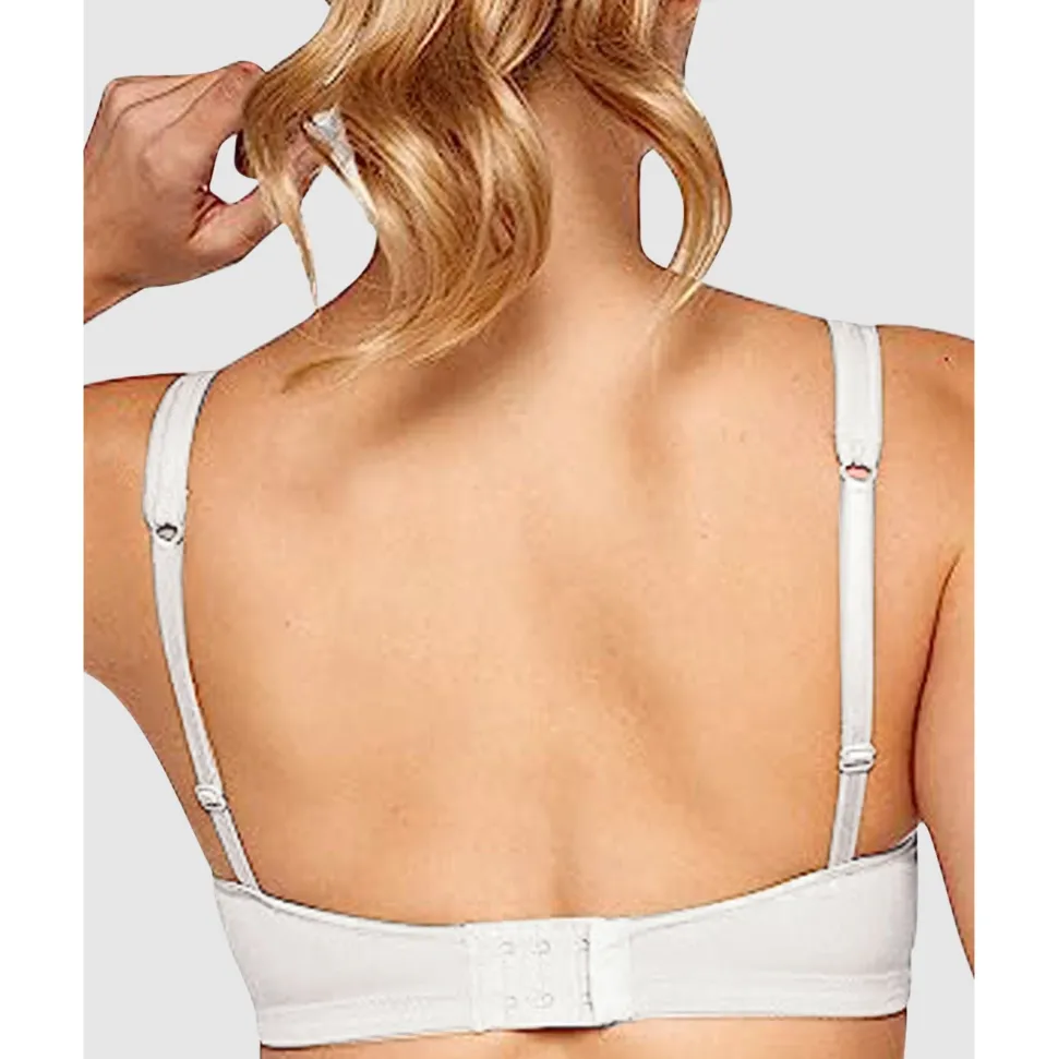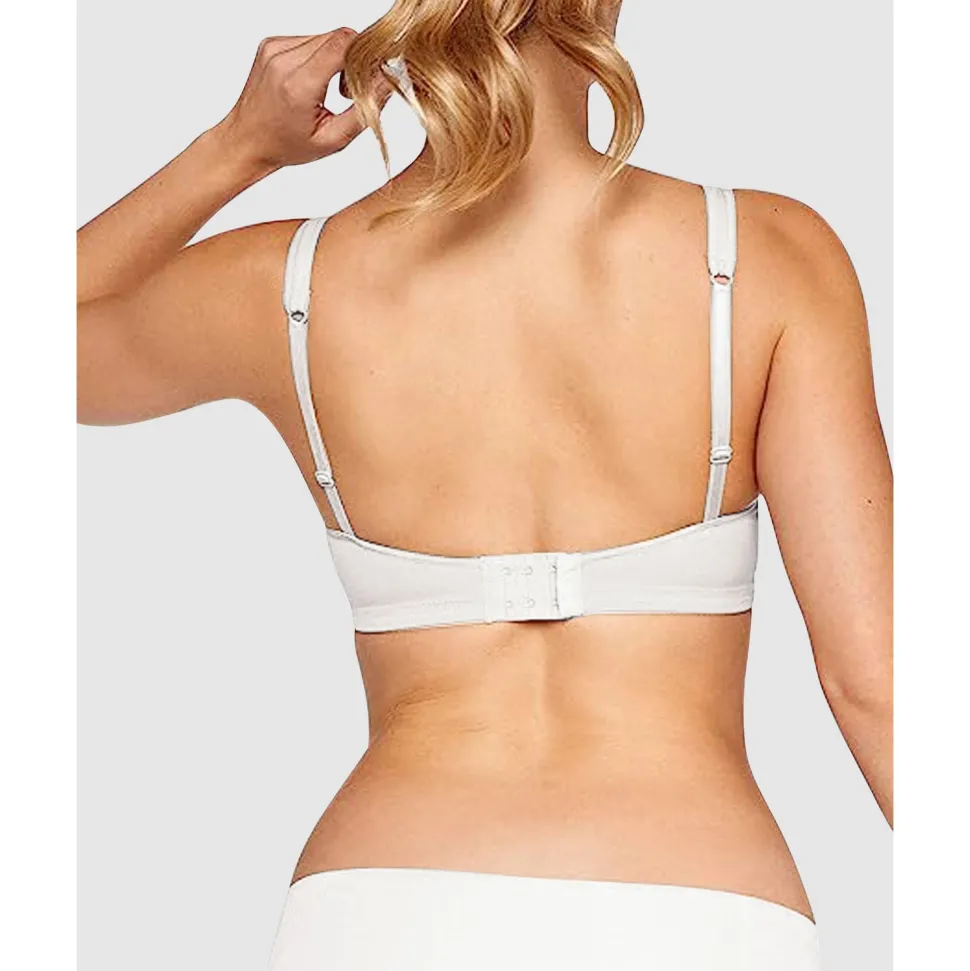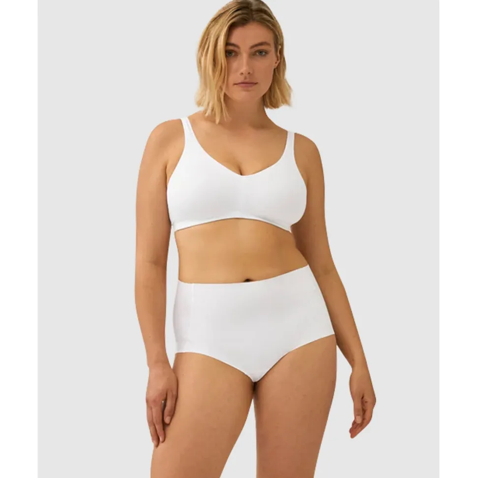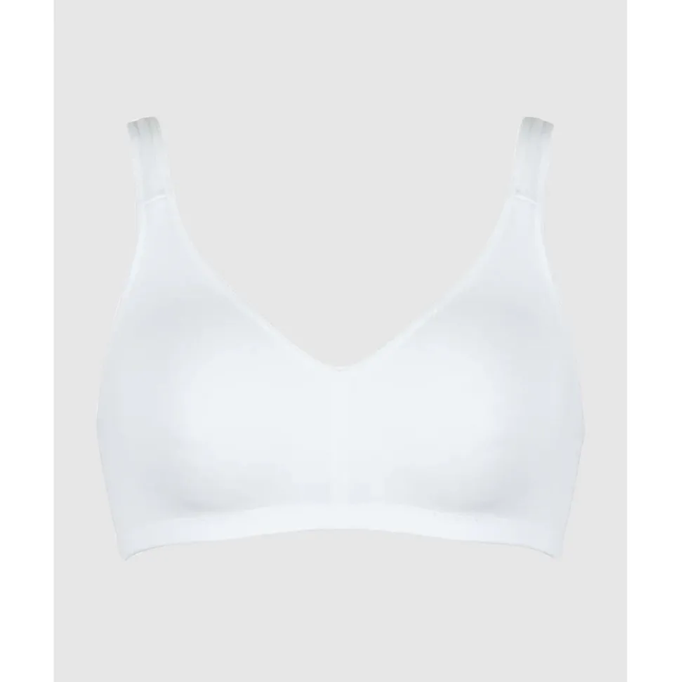 Ideal for pregnancy, monthly size fluctuations, or just ensuring the utmost comfort, this wirefree bra is made with smooth, double-moulded cups that flex to fit a B, C or D cup with no digging or gaping. You’ll also love the feel of the super-soft cotton and padded shoulder straps against your skin, and its V-shaped neckline means it works under most outfits.