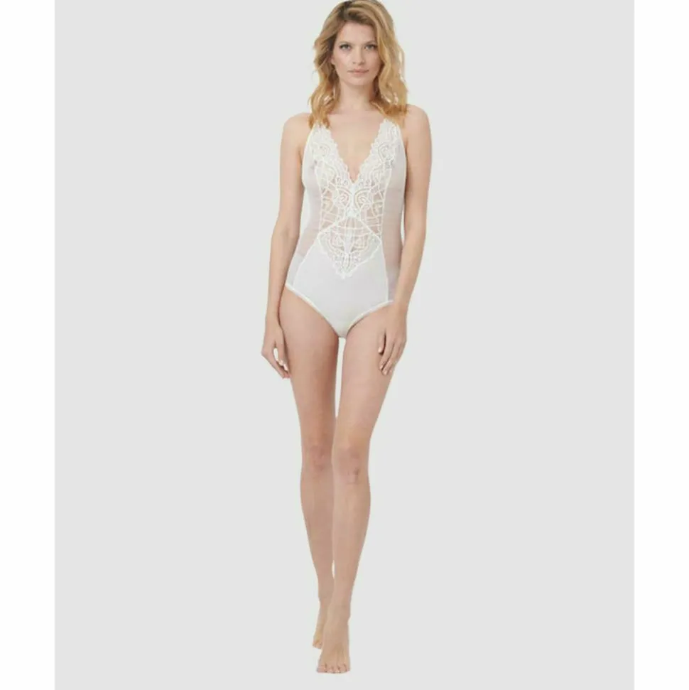 Treat yourself to a little opulence with this Lace Bodysuit, by premium-quality Polish label Oh!Zuza. Panels of opaque fabric and sheer lace combine to create a modern, geometric look, and are placed to subtly enhance your curves.