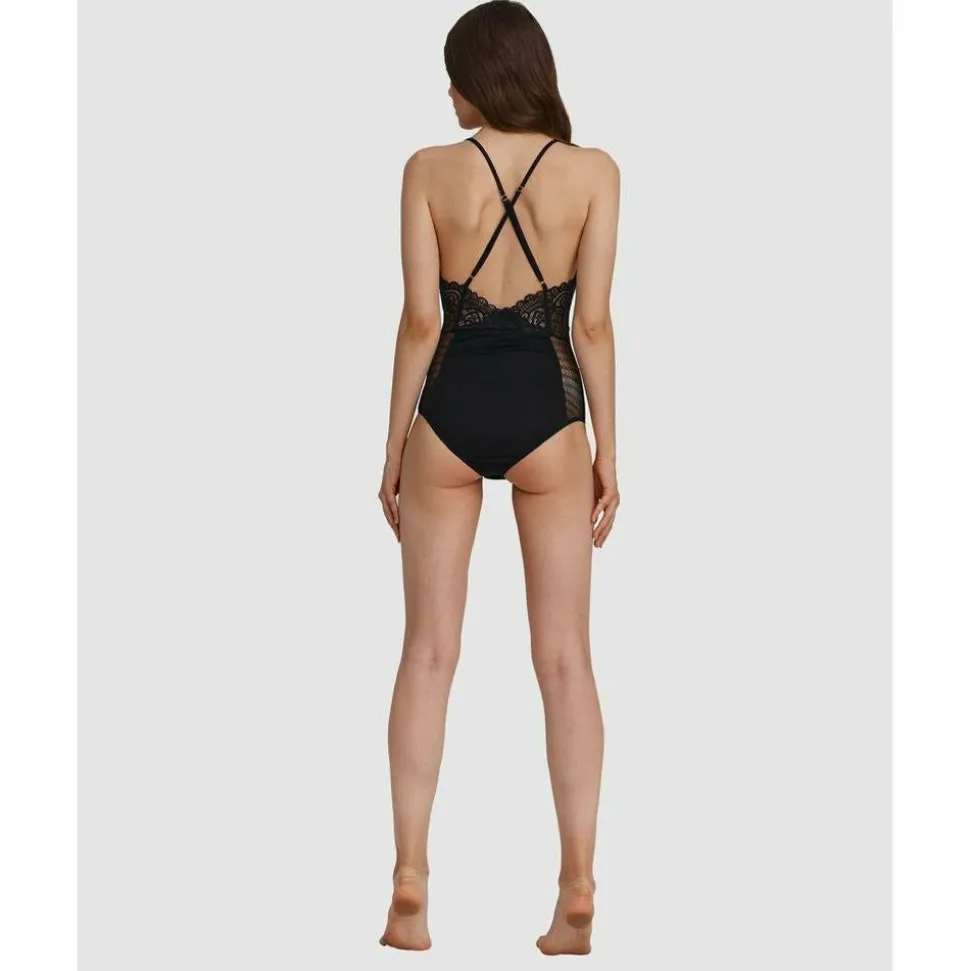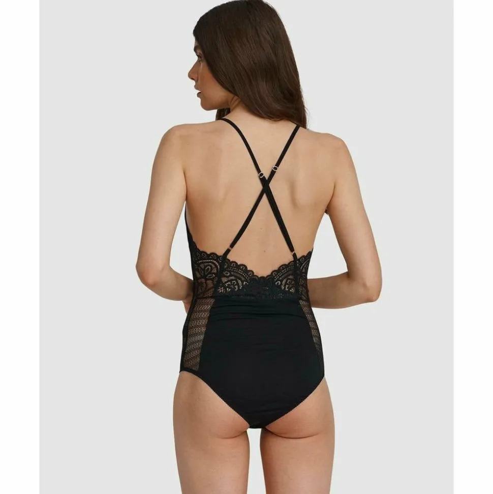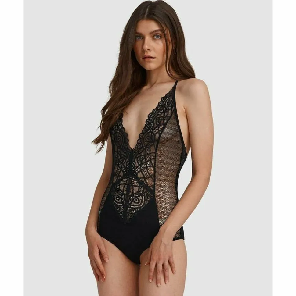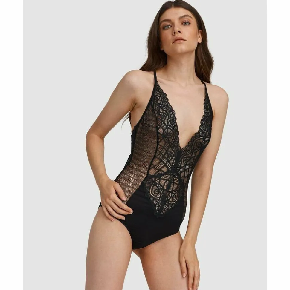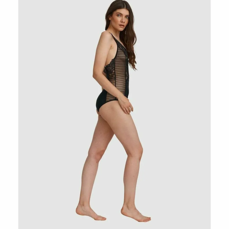 Treat yourself to a little opulence with this Lace Bodysuit, by premium-quality Polish label Oh!Zuza. Panels of opaque fabric and sheer lace combine to create a modern, geometric look, and are placed to subtly enhance your curves.