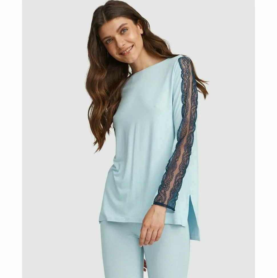 Slumber in style with this Lace Trim Pyjama Set, from the Lily Summer collection by made-in-Poland label Oh!Zuza. The soft, stretchy, natural fibre-based fabric ensures total comfort, while the sheer lace sleeve panels add an irresistible touch of drama.