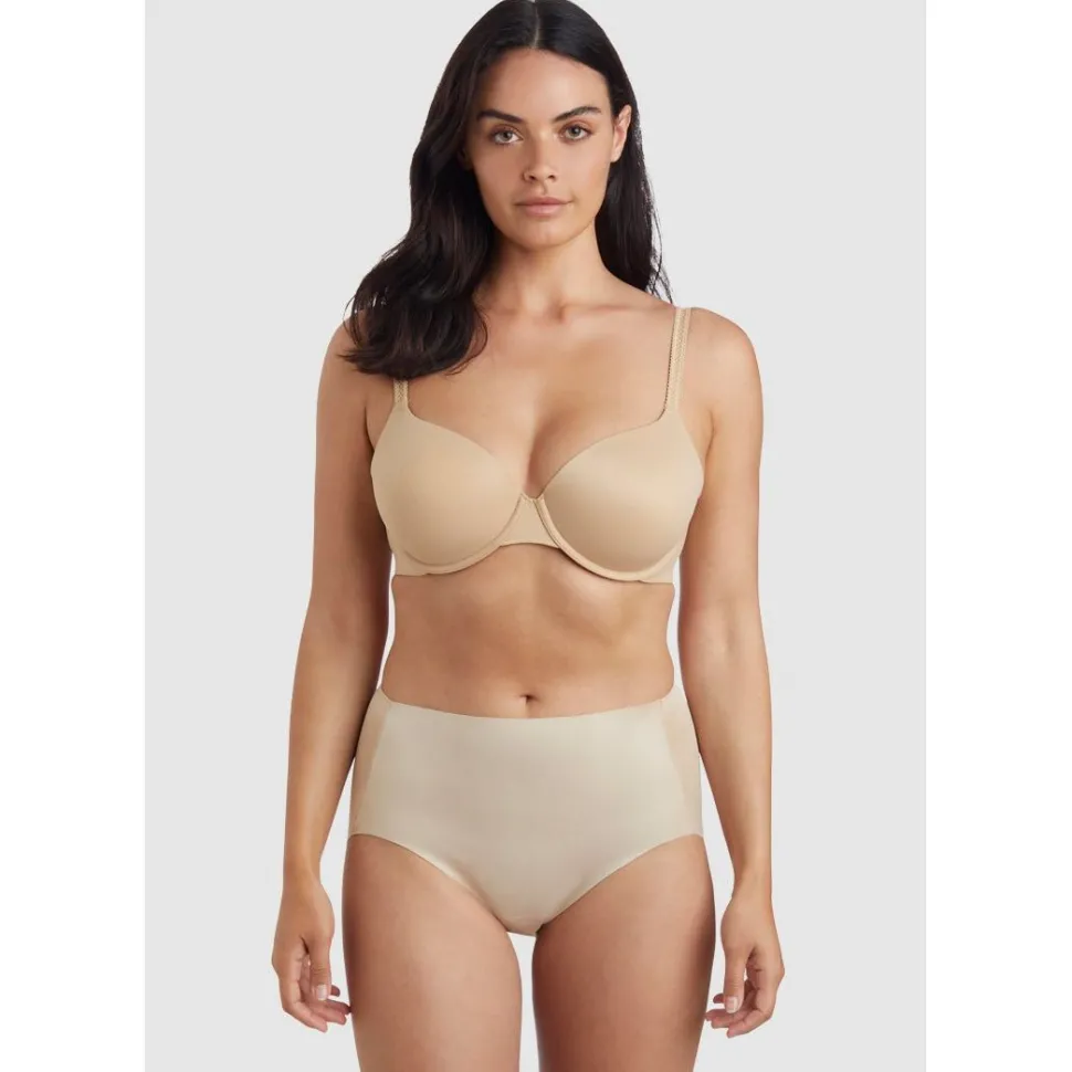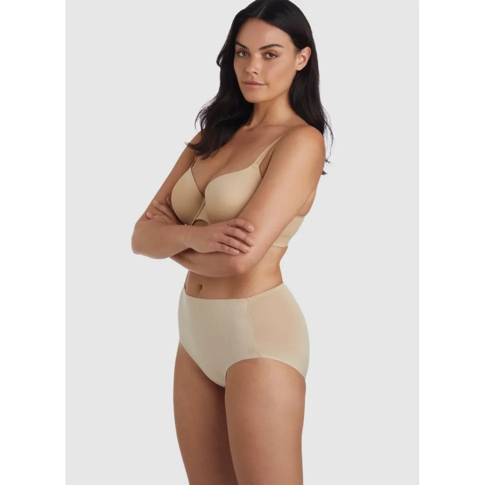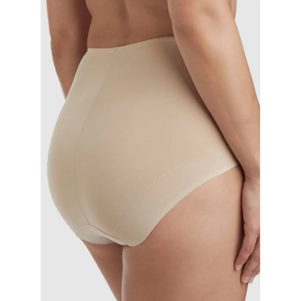 Feel fabulous every day of the week in this high waist shaping brief design, which delivers gentle tummy smoothing with a flexible fit thanks to the sprayed silicone adhesive Wonderful Panel inside the front. The single-ply rear won’t flatten your curves, and the no-sew waistband and front leg openings both lie perfectly flat for no visible lines.