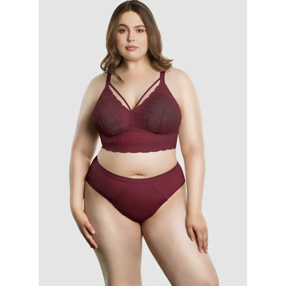 Get three ultra-stylish looks in one with the Mia Wireless Longline Lace Bralette by Parfait, which features moulded pads that are both removable (for a sheer lace look) or reversible thanks to a different colour on each side. Designed especially for fuller busts, this wireless bralette has an extra-wide band to enhance support.