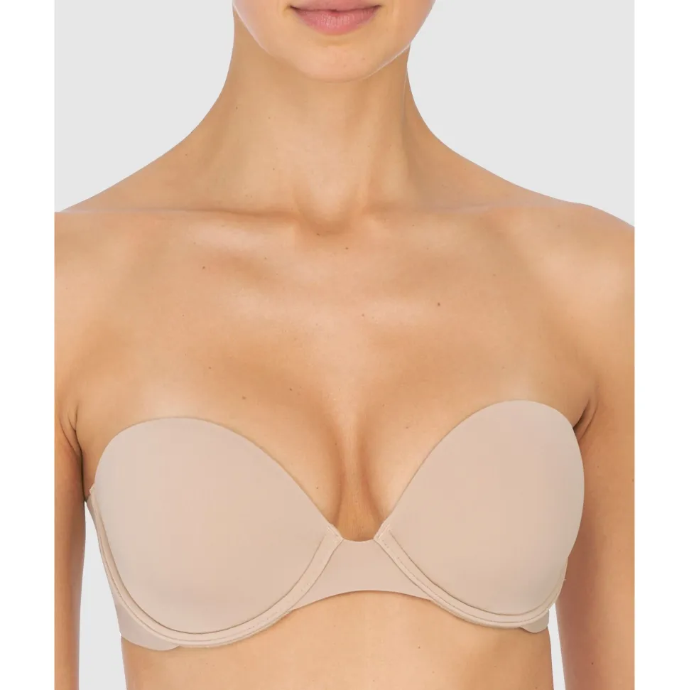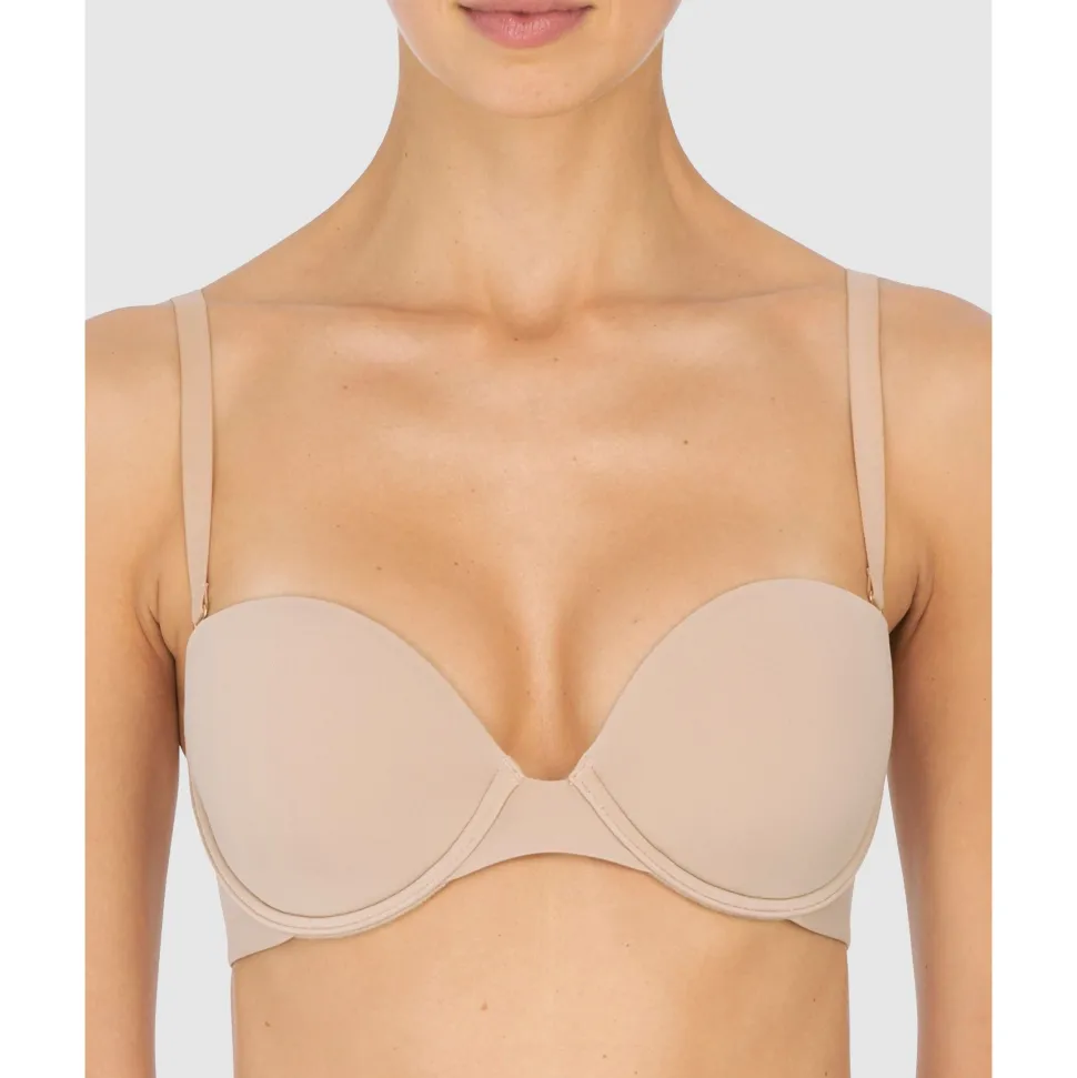 One bra, any neckline: not only can this versatile strapless bra be worn with the straps conventional, crossed over or completely removed, but it has three extra tabs at the back to position the straps precisely according to your outfit. Foam-padded contour cups ensure a smooth look, a 2-ply jersey back with silicone trim prevents it from slipping down, and the strapless plunge bra shape means it also works under deep V necklines.