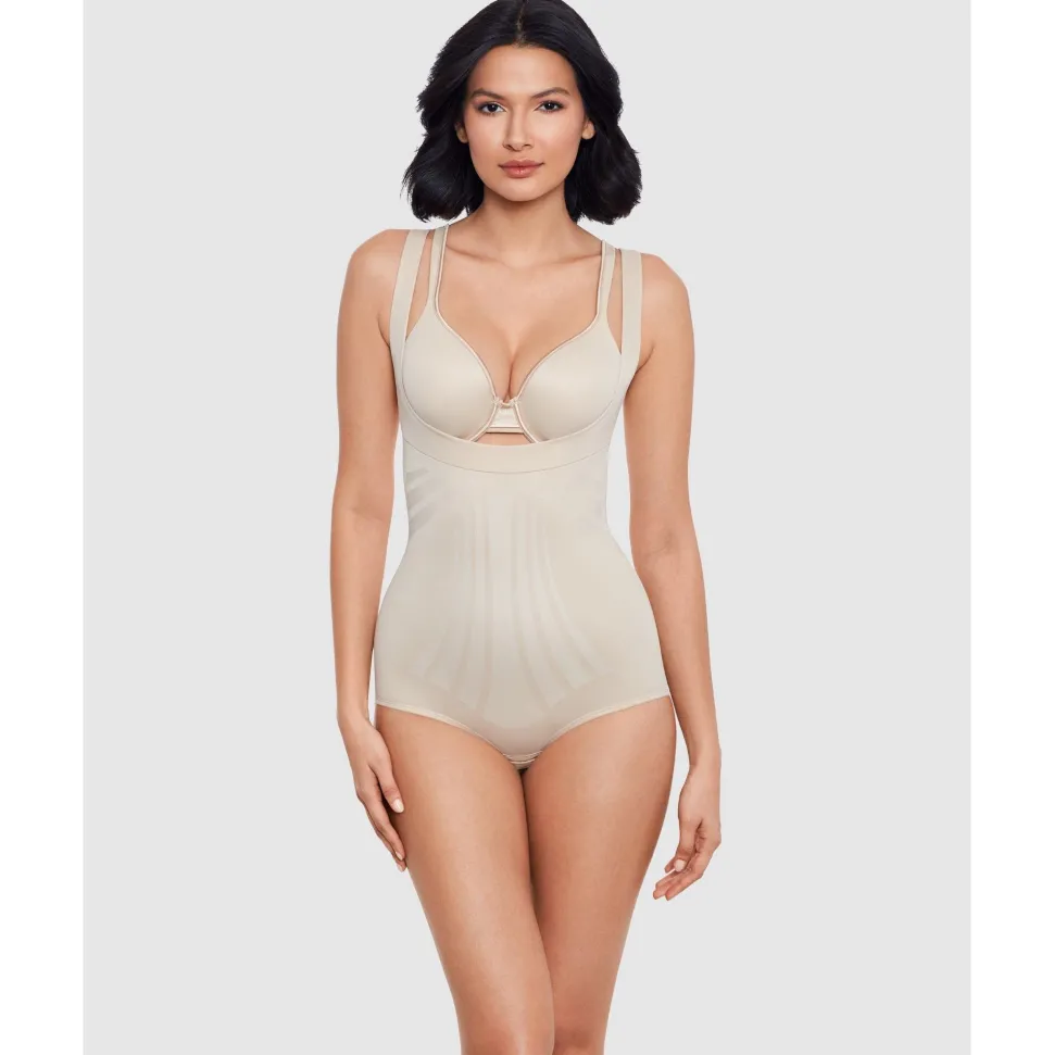 Featuring the patented power of Lycra® FitSense™ technology, this open bust bodybriefer delivers extra firm control to slim your waist, tummy and midriff, while the centre back seam ensures it contours to your body for a smooth back too. Choose this cupless shapewear piece when you need a full torso shapewear piece that you can combine with a plunging bra for low-cut necklines, or just wear it with your favourite-fitting bra and enjoy sensational curves from every angle.