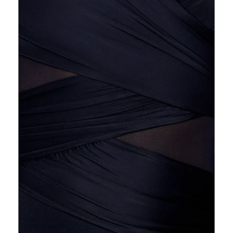 Fabric composition: Body – 69% Nylon, 31% Spandex. Drape – 82% Nylon, 18% Lycra? Spandex. Mesh – 89% Nylon, 11% Spandex