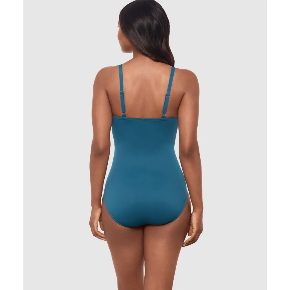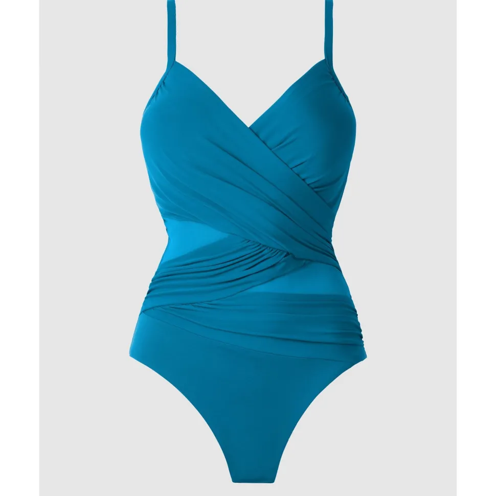This shaping swimsuit with hidden underwire will nip, tuck and lift your silhouette to perfection. Made from comfy yet ultra-firm Miratex® control fabric for all-over slimming, the clever combination of wrapover draping and sheer mesh inserts also creates the illusion of a smaller waistline.
