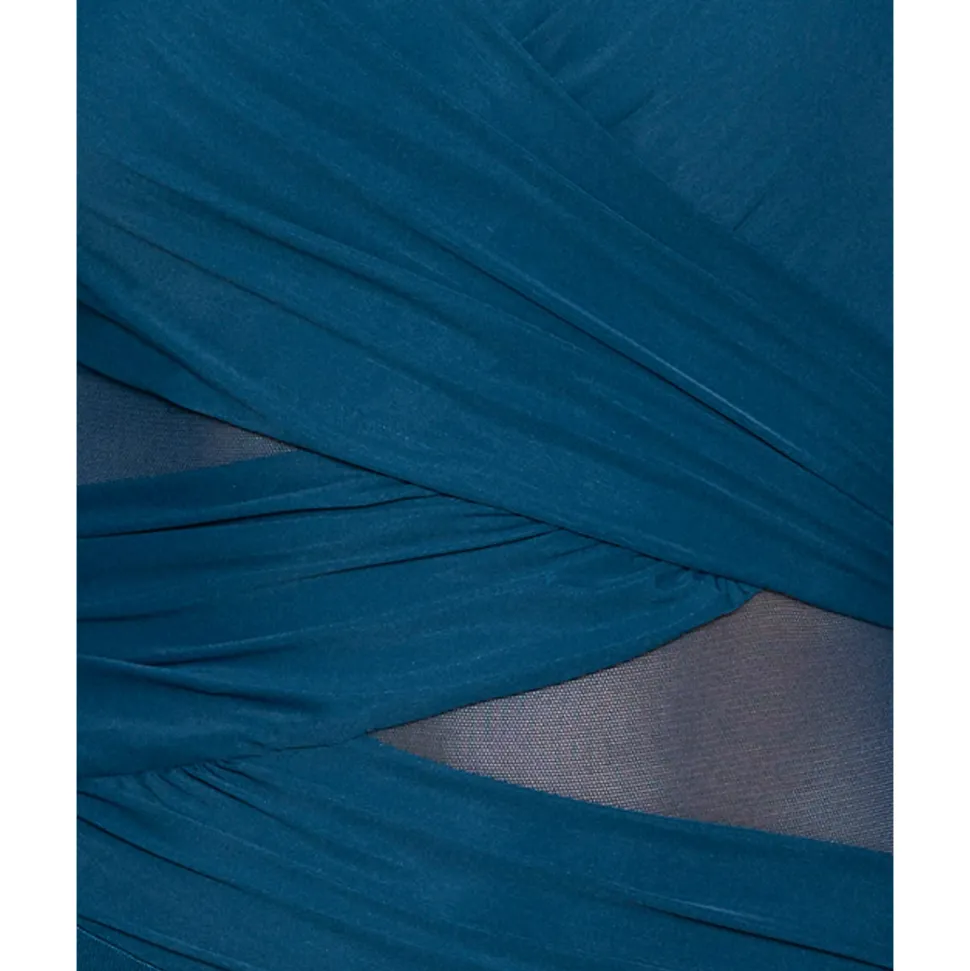 Fabric composition: Body – 69% Nylon, 31% Spandex. Drape – 82% Nylon, 18% Spandex.