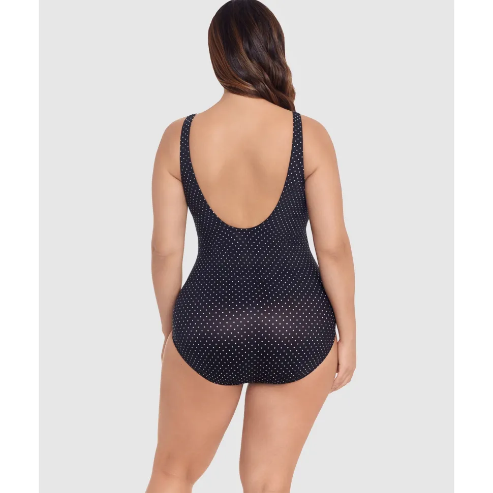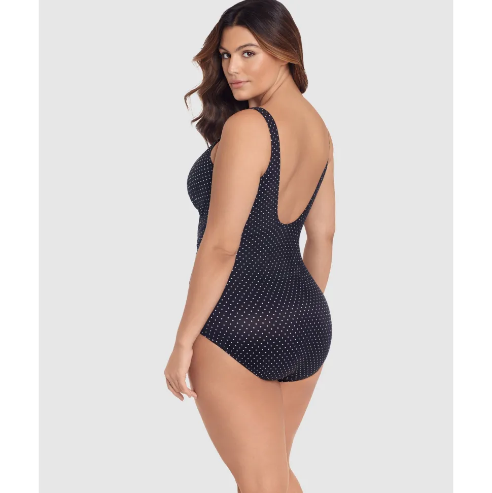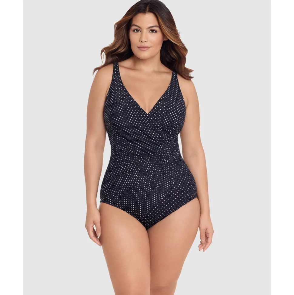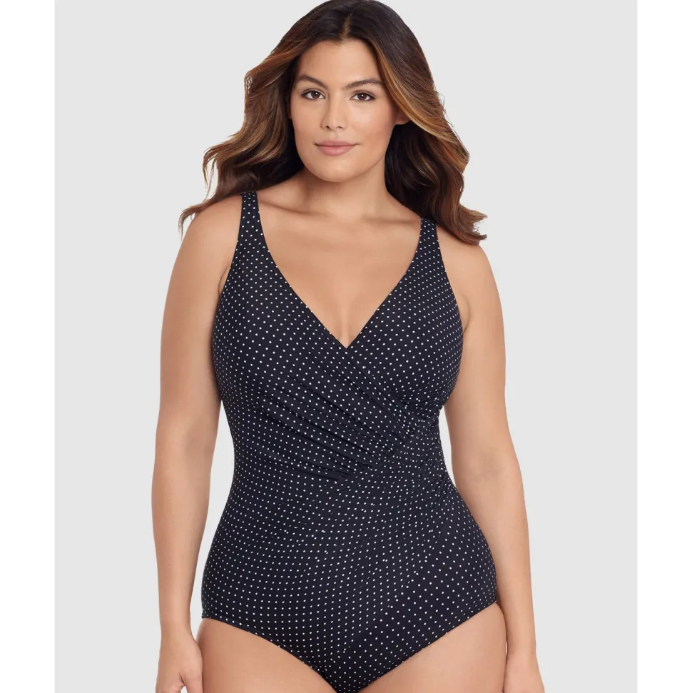 This classic, one-piece swimsuit with a crossover neckline is the perfect way to create a more hourglass-y silhouette. The wrapover front leads to subtle gathering at the side to emphasise your waistline, and this shaping swimsuit provides all-over smoothing and slimming thanks to Miraclesuit’s lightweight-yet-powerful Miratex control fabric.