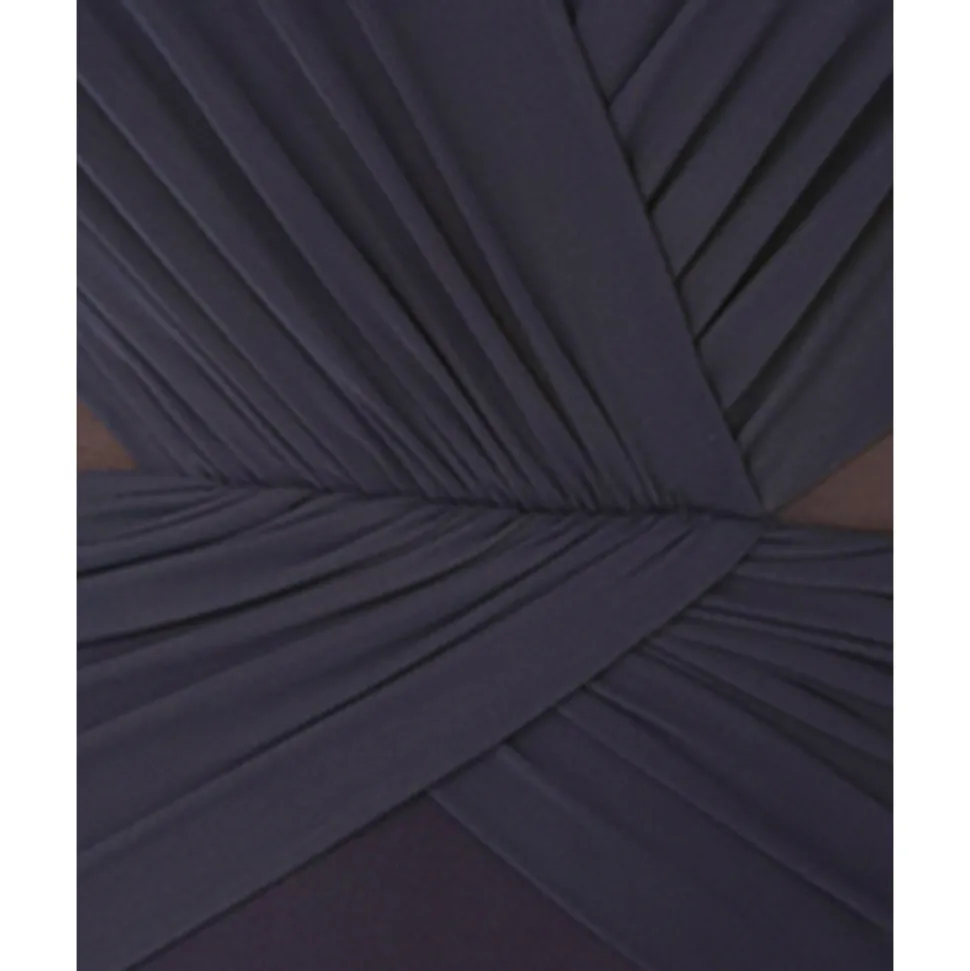 Fabric composition: Body – 69% Nylon, 31% Spandex. Drape – 82% Nylon, 18% Spandex.