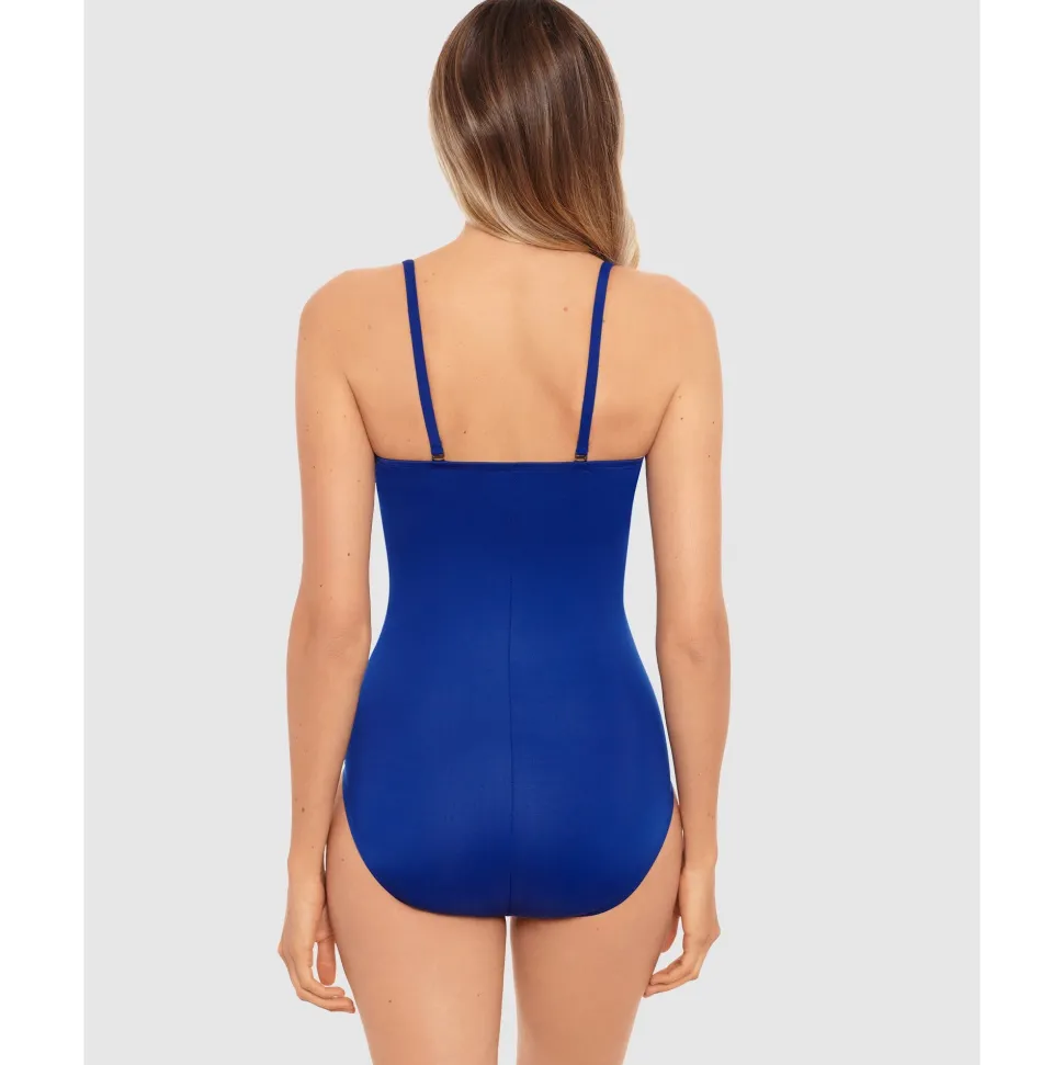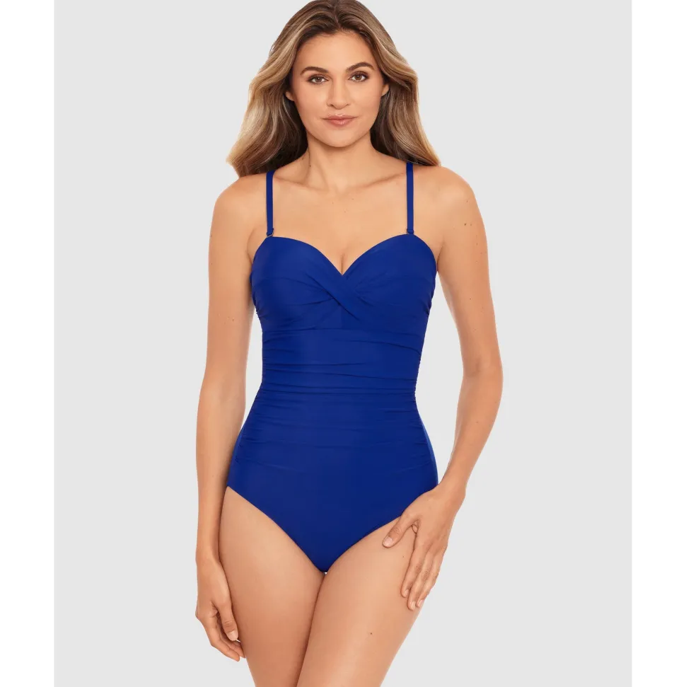 This one-piece swimsuit with detachable straps is the perfect way to enjoy both tan line-free shoulders and a smoother tummy! It’s a slimming control swimsuit made using Miraclesuit’s powerful Miratex fabric, which slenderises without feeling constraining. Subtle draping across the tummy also helps to flatter your natural curves. Chic crossover detail at the neckline highlights your bust, which is lifted and supported by hidden underwires and foam cup padding.