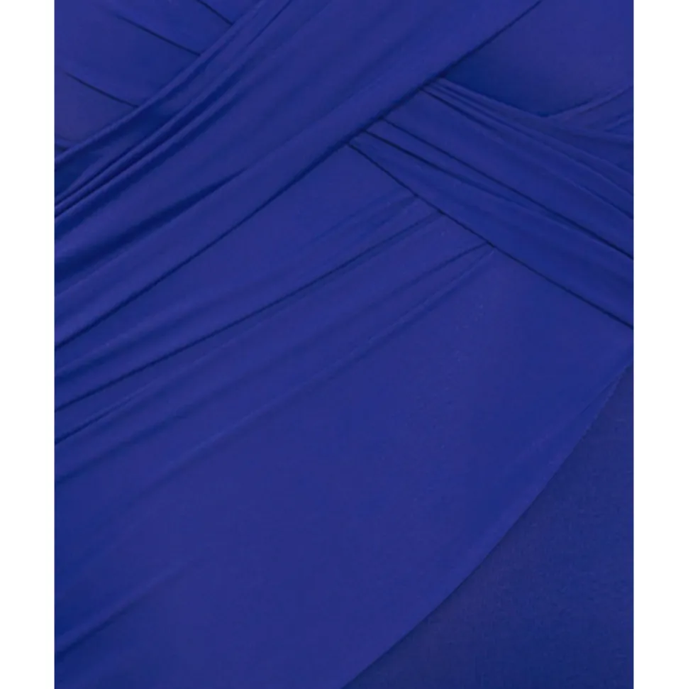 Fabric composition: Body – 69% Nylon, 31% Spandex. Drape – 83% Nylon, 17% Spandex.