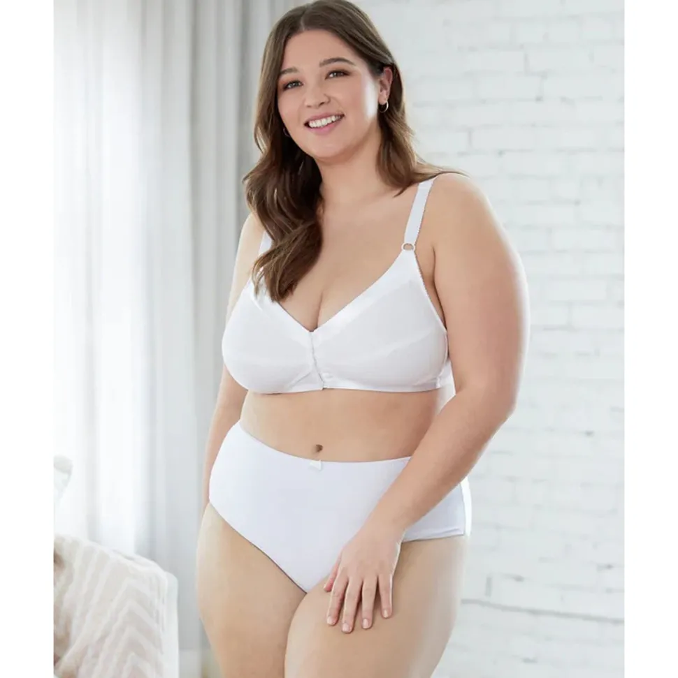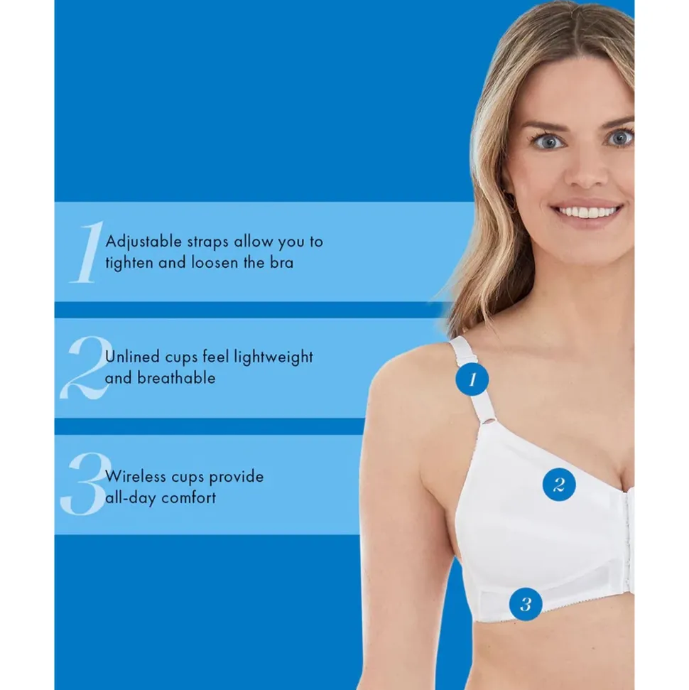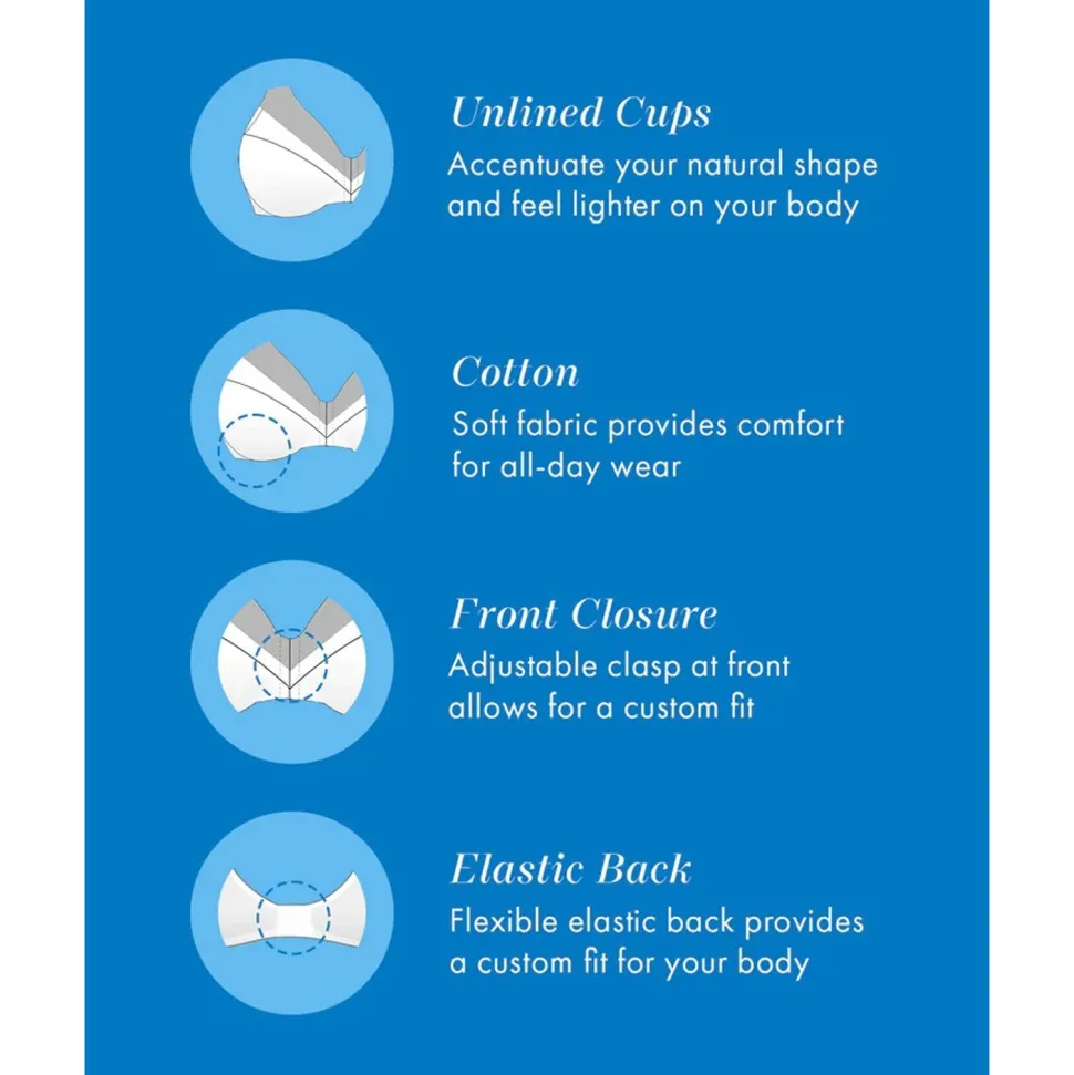 Enjoy easygoing support, a flattering natural-look shape, and the convenience of an adjustable front closure with this ultra-comfortable wirefree bra. Made primarily from cotton for softness and breathability (plus trims in glossy satin), it feels light on the body while still delivering the secure fit you want from your everyday underwear.