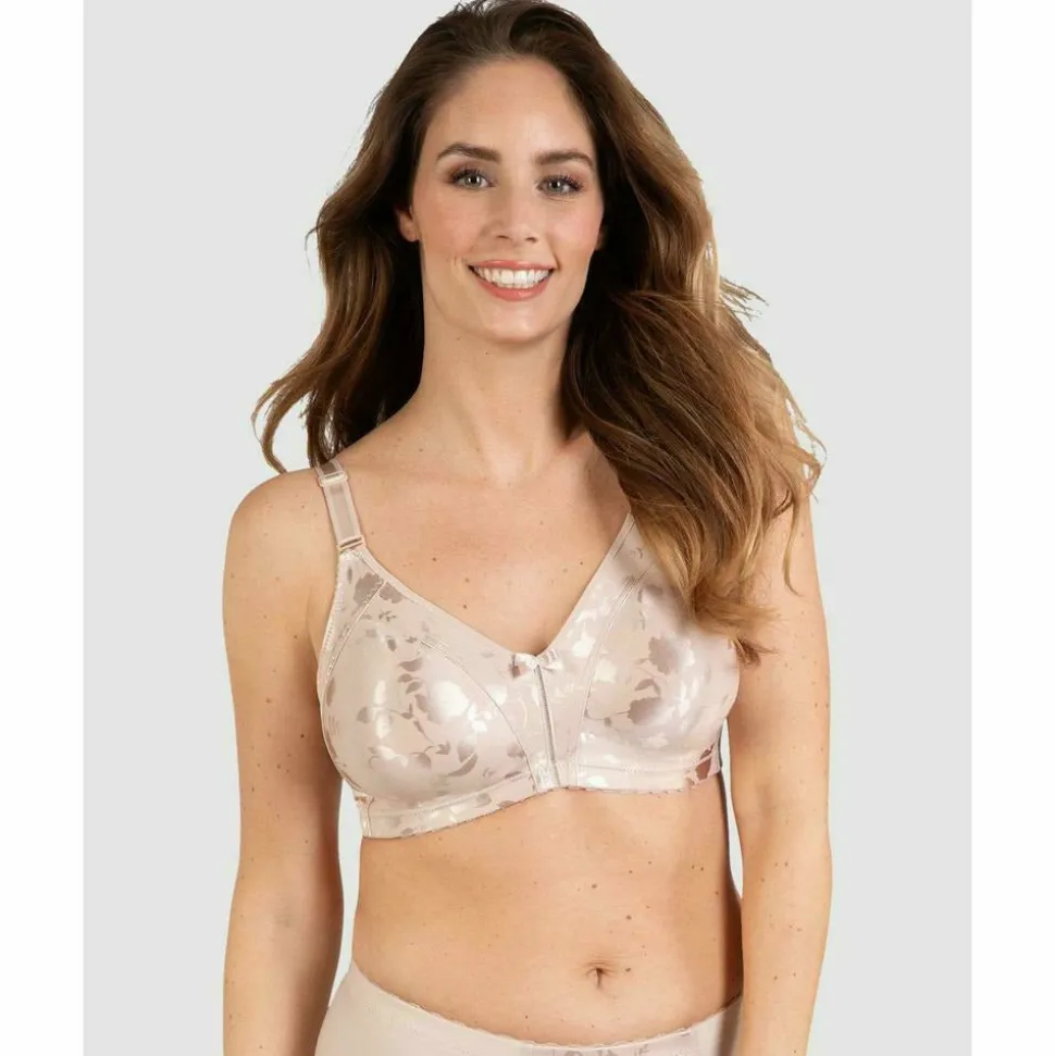 This wireless minimiser bra provides a stylish way to achieve a slimmer, sleeker silhouette at the bust line. The cups are seamless and made from a glossy, floral-print fabric. This minimiser bra is designed to reduce your bust by up to one cup size, and also features side support panels for a narrower front profile. It has wide straps for added comfort, which fasten at the front for your convenience.