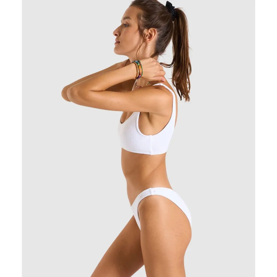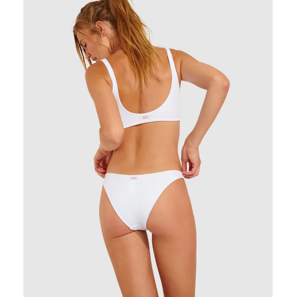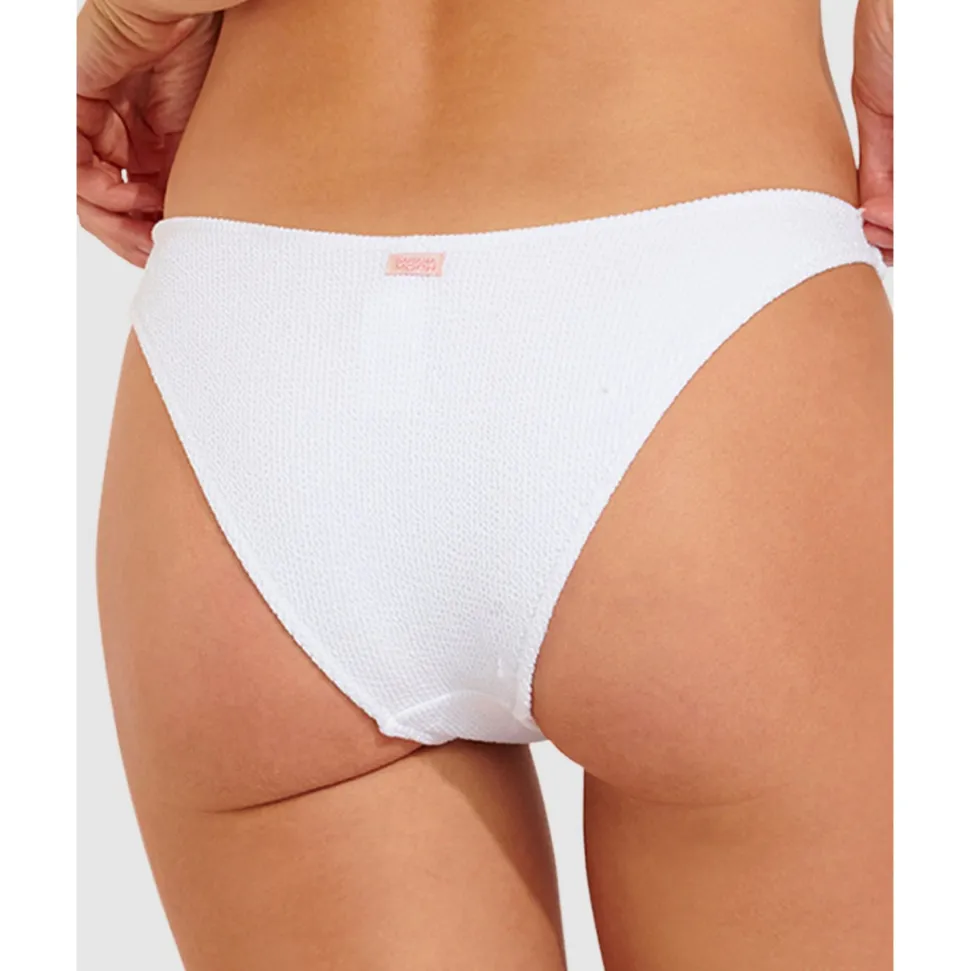 Whether you’re chilling by the pool or riding the waves, do it in style in this sporty bikini bottom, which has high cut sides and moderate rear coverage for a casual fit. It’s made from ribbed, crinkle-texture fabric and is subtly decorated with a Banana Moon logo patch at the back.