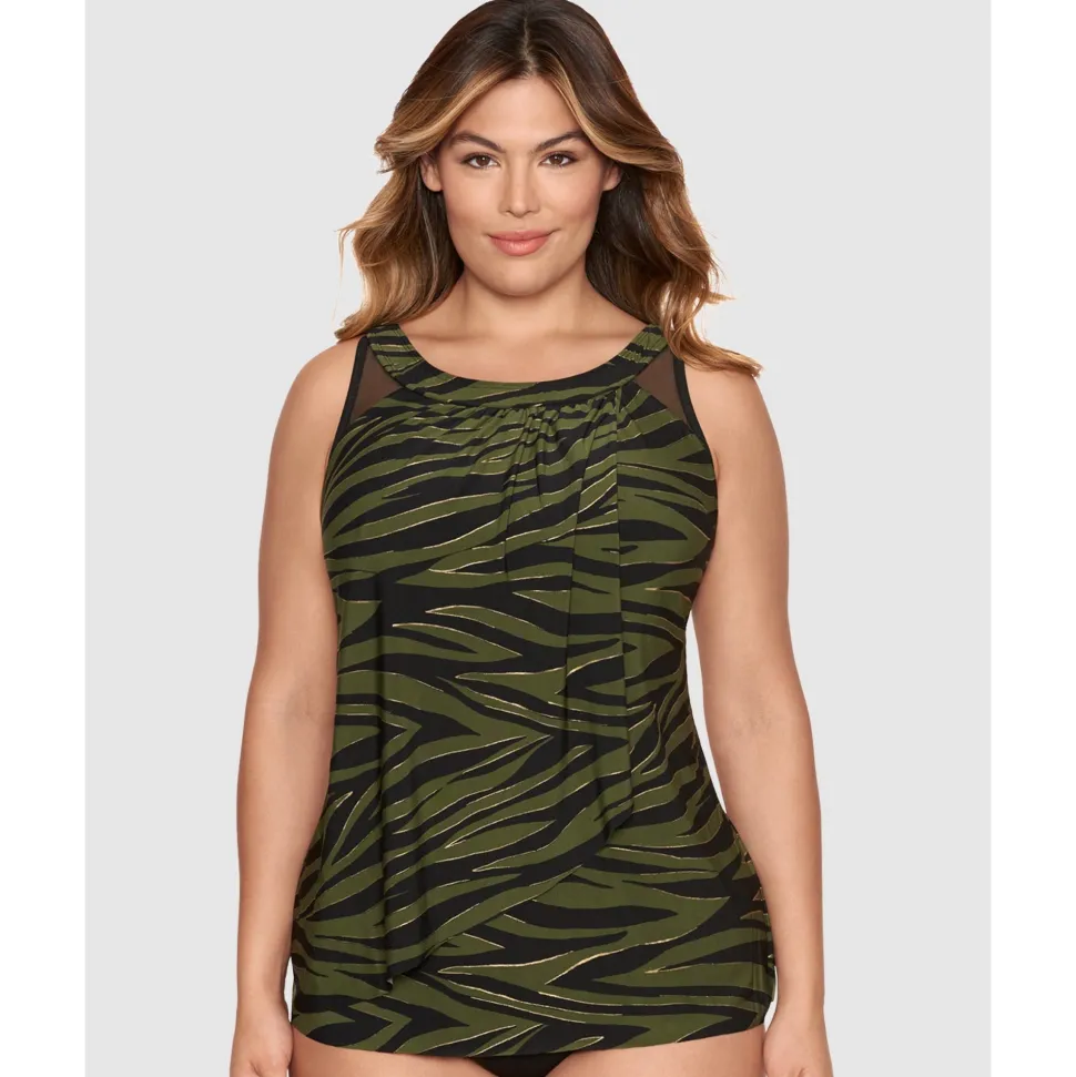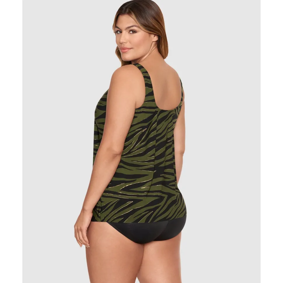 Show off your wild side in this zebra print tankini top, which cleverly hides your tummy thanks to its draped, faux-flyaway design. Also hidden inside are underwired cups, so you feel fully supported and secure when you go for swim.