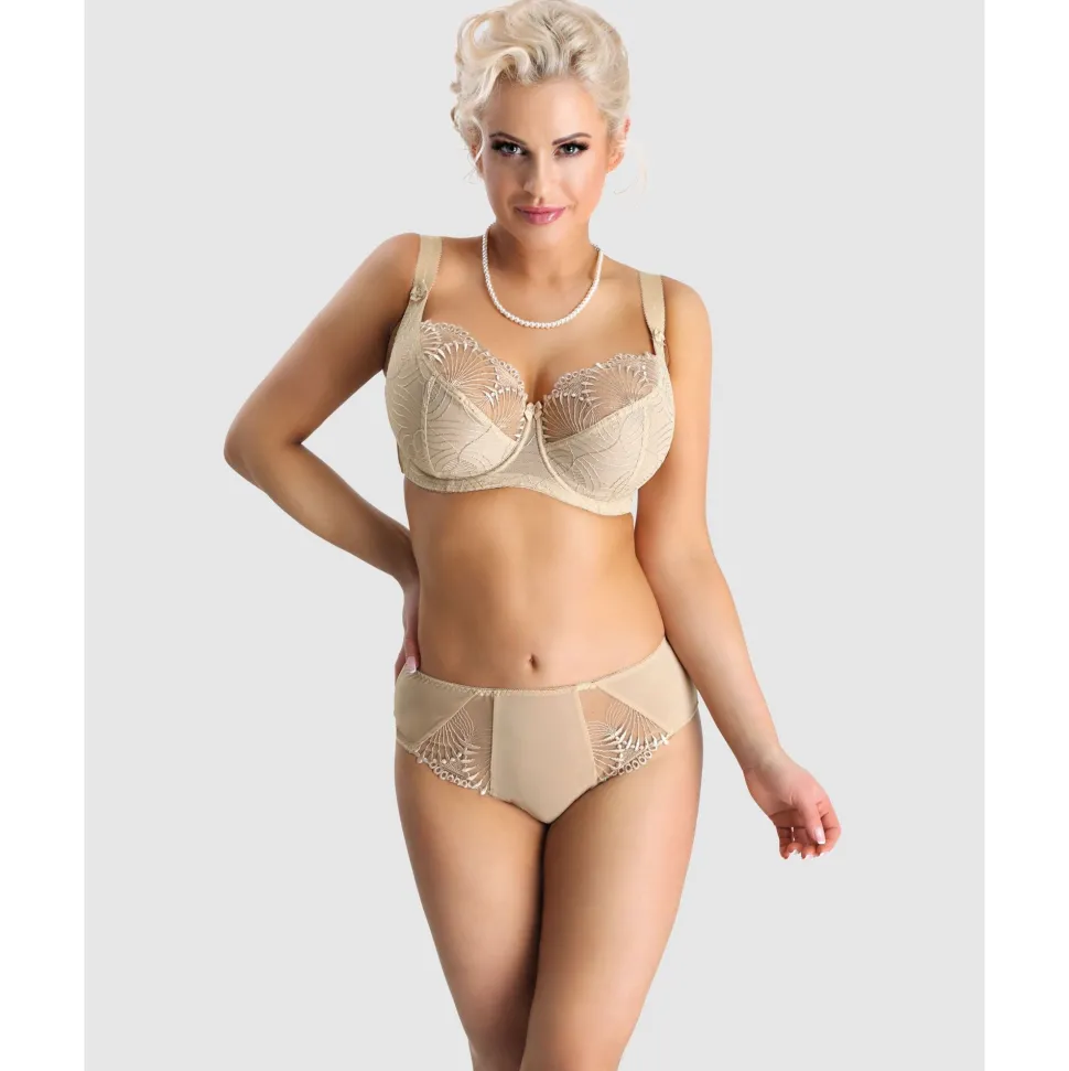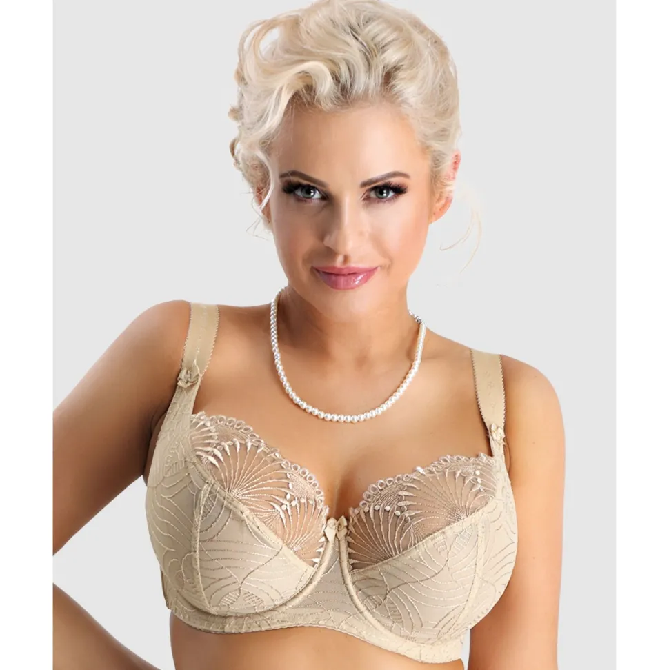 Perfect for both everyday wear and special occasions, you’ll love the support every bit as much as the beautiful look of this large cup bra, which is made from a high-end embroidery that’s left sheer on the upper cup. Whether you need an F cup bra, a K cup bra, or beyond, the 3 part cup bra design of Selena lifts and rounds for excellent full bust shaping without the need for bulky padding.
