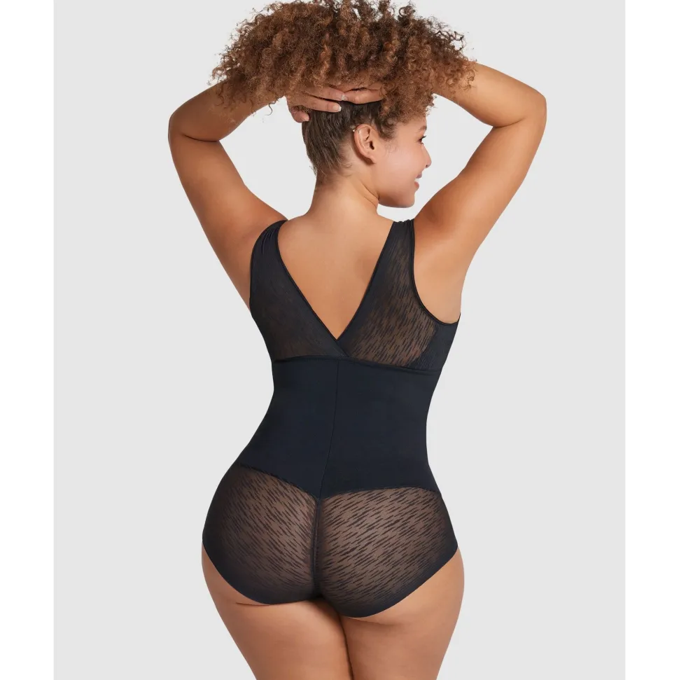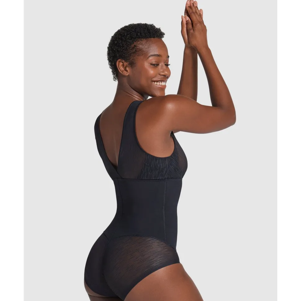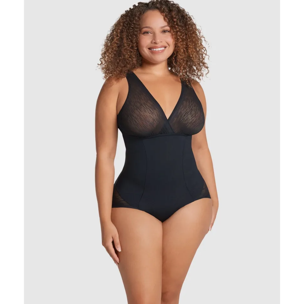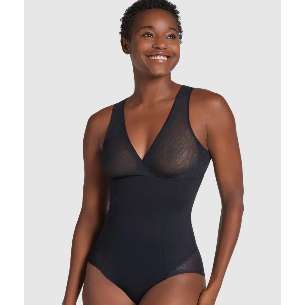 Designed with a supportive underbust band and stretchy, wirefree cups so that you can wear it both with and without a bra, this shaping bodysuit has an inner layer of PowerSlim® fabric around the torso and an outer layer of sheer SmartLace®. Enjoy moderate upper tummy shaping and firm control in the mid-to-lower tummy area, plus strategically-placed seams that help to create an hourglass effect.