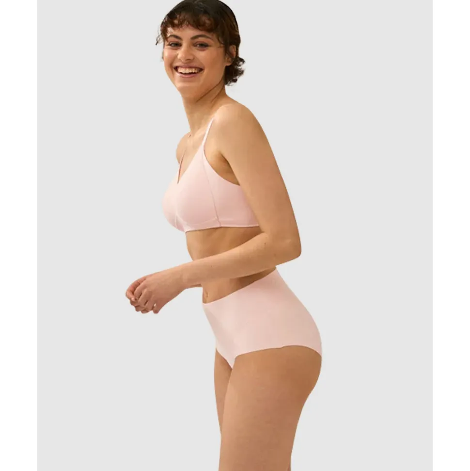 Get the perfect silhouette the comfy way with this wireless padded bra from Naturana’s Clean Cut collection. It features tall side-smoothing panels made from a soft and thick fabric to eliminate bulges, plus seamless foam-lined cups that looks flawlessly smooth under clothing. The perfect wireless t-shirt bra for everyday wear!