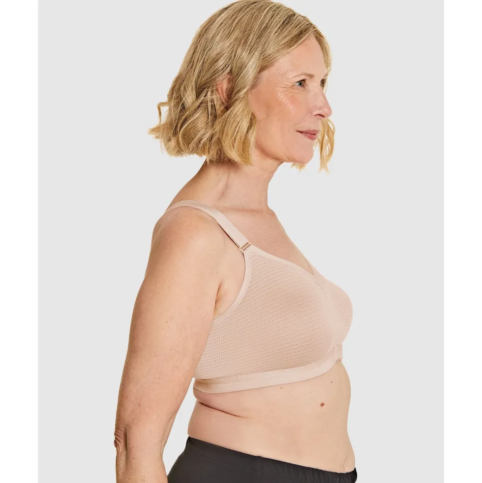 Designed for comfort, support and easy access to surgical areas, this post surgical bra is made with antibacterial, thermo-regulating X-STATIC® silver fibre, and is simple to get on and off thanks to the front open bra design with press studs. Velcro straps allow for easy length adjustment from the front, and can be unfastened to drop down the cup for post-surgery care. The bra also benefits from seamfree, double-layer cup fabric that’s gently supportive, and which allows the bra to be used with a ‘softie’ prosthesis if required.