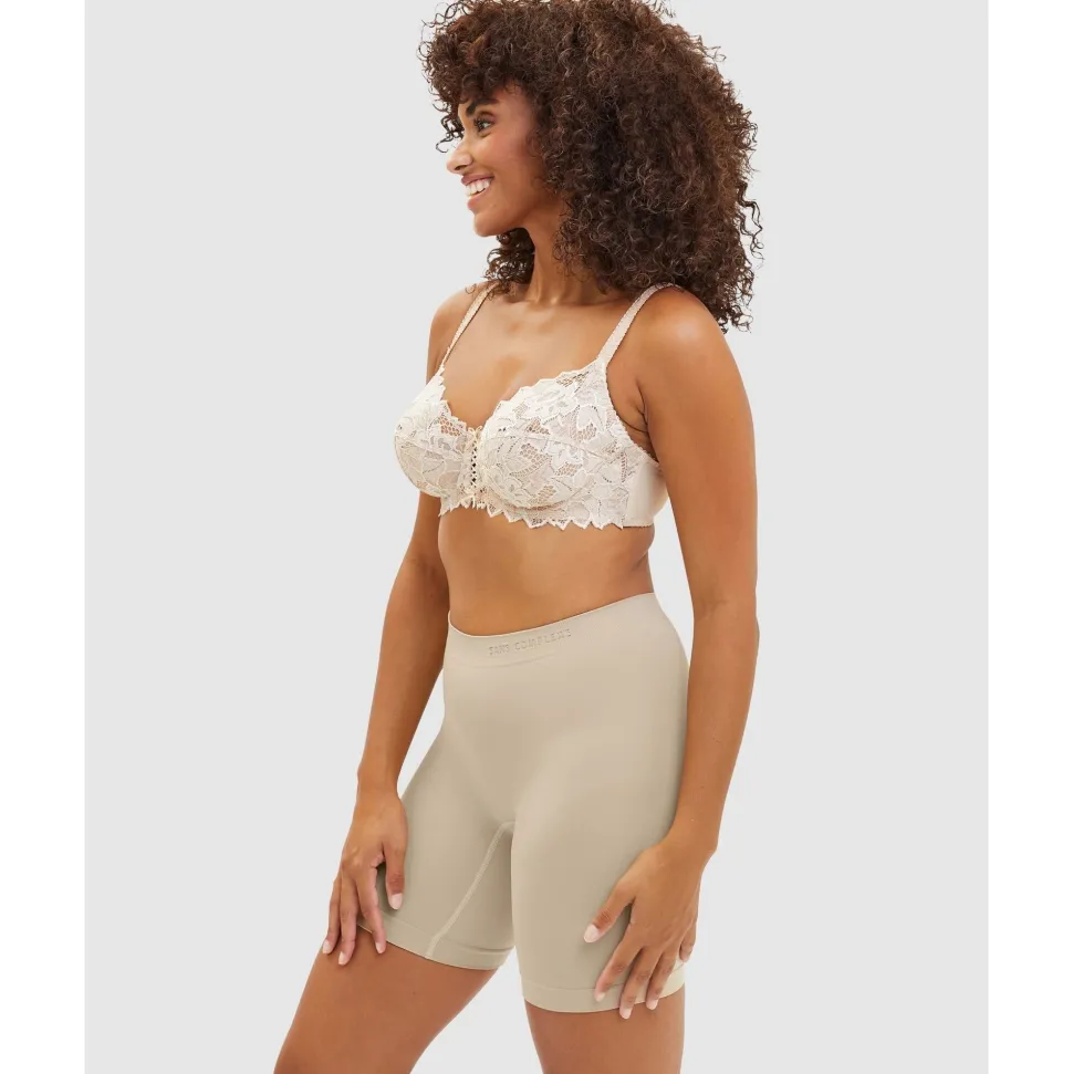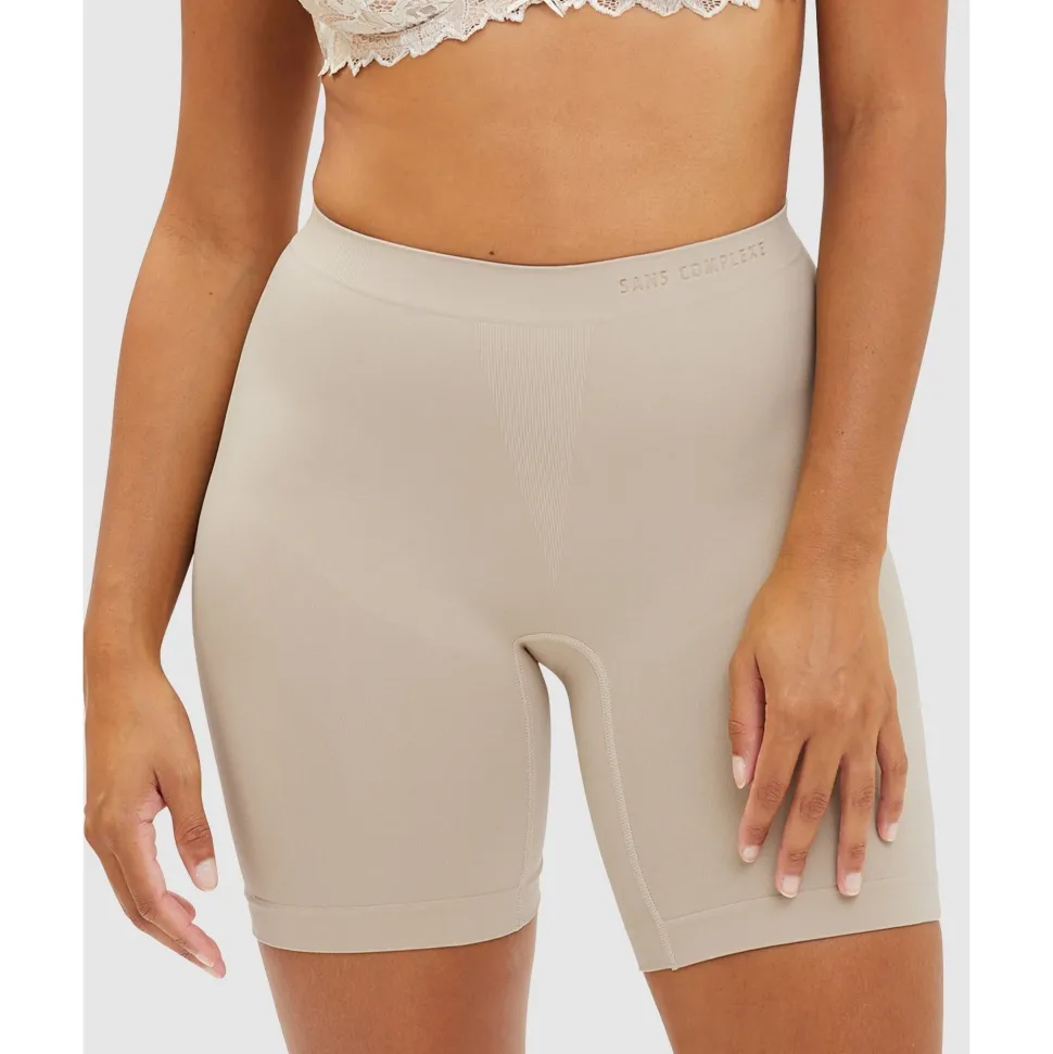 When you want to prevent thigh chafing or just feel more covered under skirts and dresses, you’ll love this anti-chafe underwear design which has reinforced fabric at the crotch to prevent friction at the thighs. It also slims and smooths your curves from waist to mid-thigh, and it subtly branded with the Sans Complexe logo at the waistband.