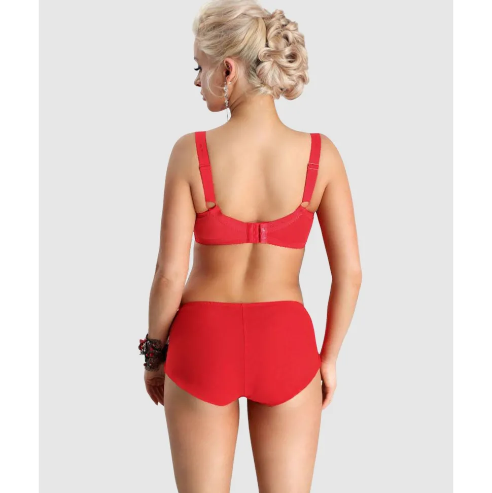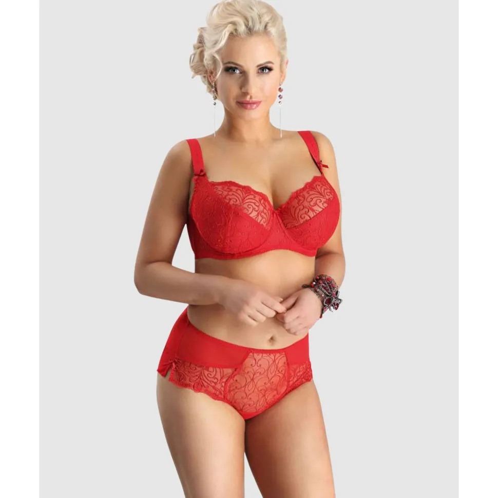 Sultry elegance meets excellent full bust support in this large cup bra made from a beautiful custom embroidery that features the Nessa butterfly logo. 3-part cups, a strong mesh band and plenty of full bust know-how make this an incredibly supportive bra for even the largest of cup sizes, but it still maintains a light and delicate look thanks to the sheer panels that trim the top of each cup.