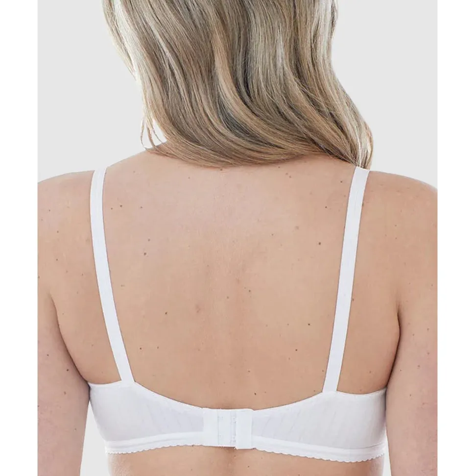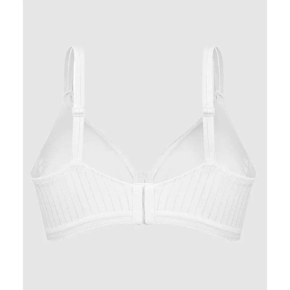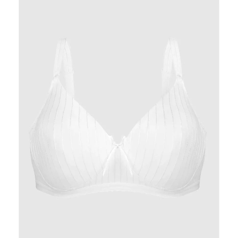 Perfect under any outfit, including V necks, this wirefree bra with a low plunge neckline is sure to become a new daily favourite. Made from breathable cotton fabric with a chic striped finish, it delivers gentle lift and shaping thanks to its lightly-lined cups and supportive, U-shaped back design.