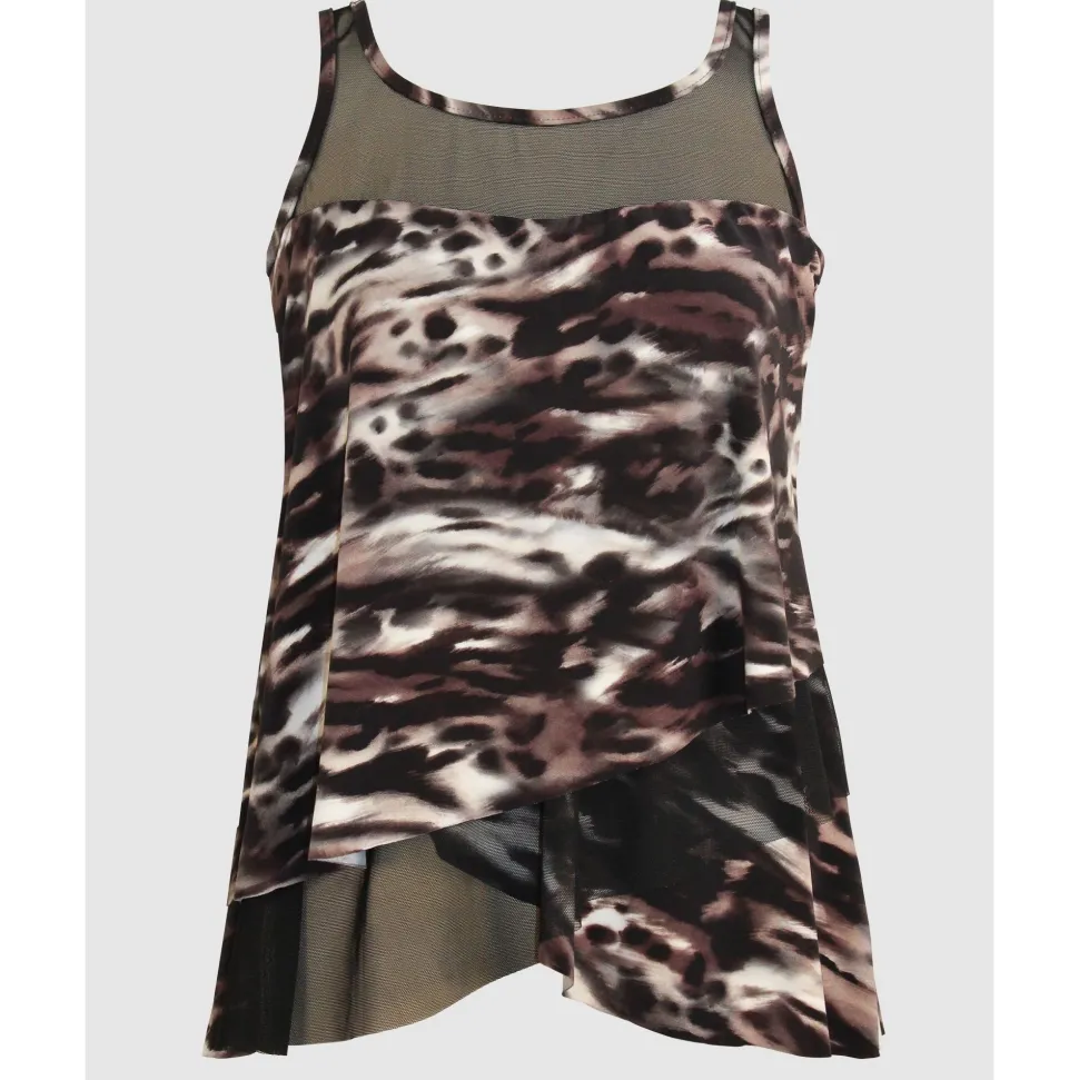 Artfully conceal your tummy in this stylish, high neck tankini top with mesh details and a layered design. The floaty fit will leave you feeling every bit as comfortable as you will be feeling confident, while hidden underwire ensures your bust stays totally secure.