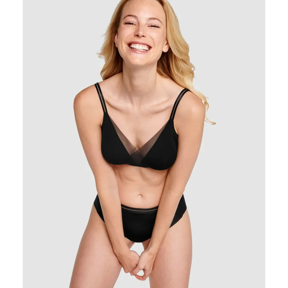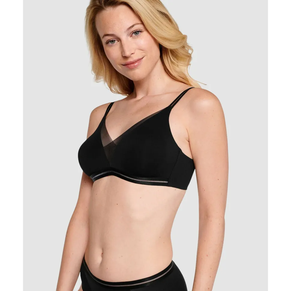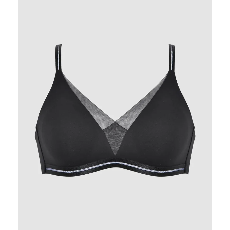 You’ve never felt comfort like this soft and seamless wirefree bra before! Made from innovative 360° stretch fabric which is soft as butter and allows complete freedom of movement, it has lightweight, pre-formed cups that won’t show below your clothing and a seamless back. Not just a comfortable bra option but a supportive and stylish one too, it’s finished with overlapping mesh at the neckline plus two-tone elastic for a modern, graphic look.