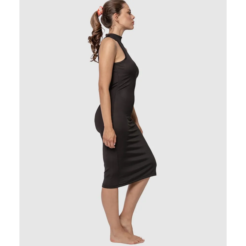 Buy Turtle Neck Sleeveless Casual Ribbed Midi Dress