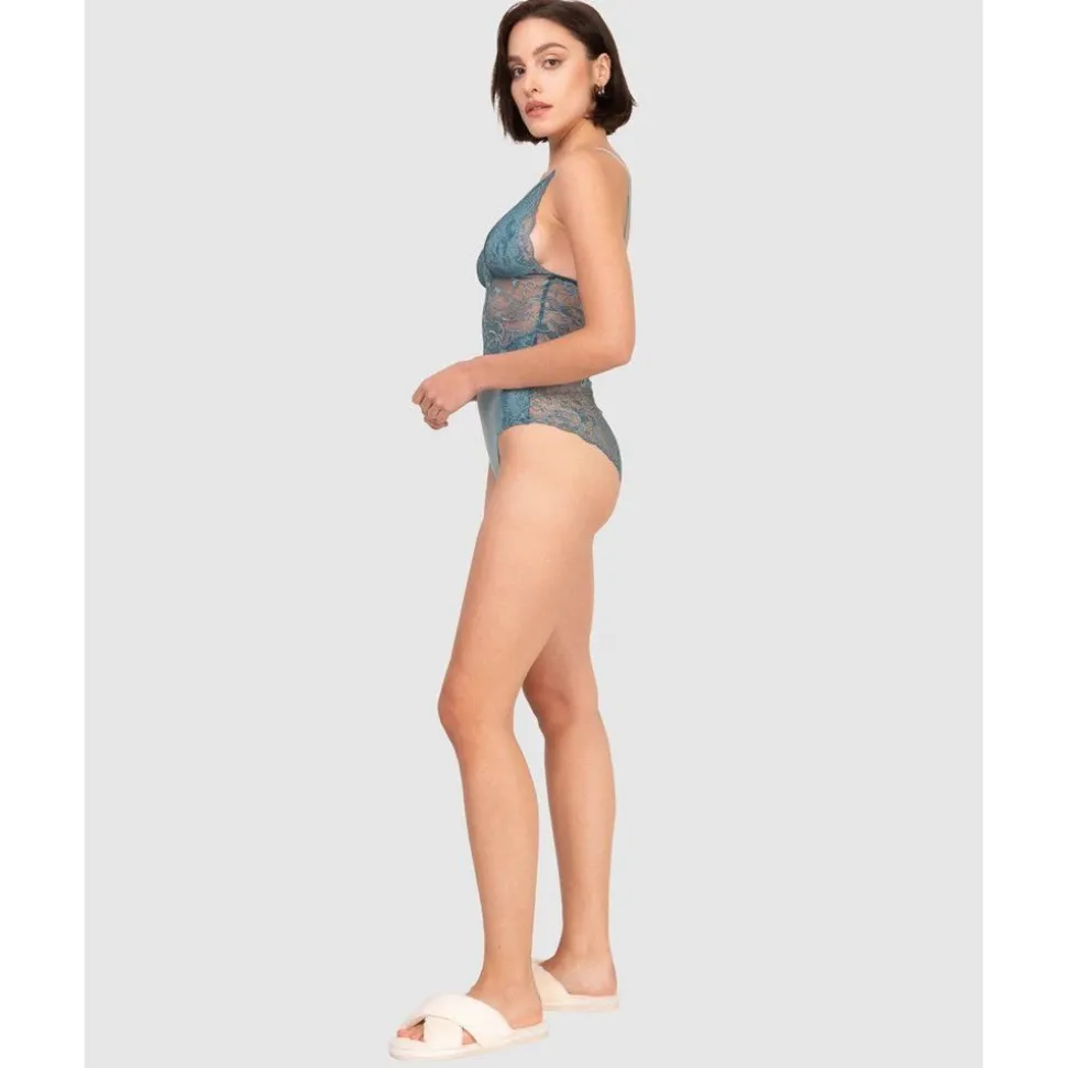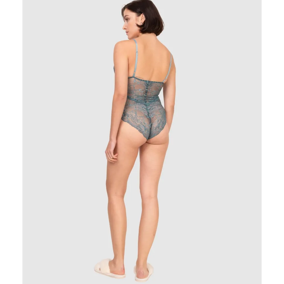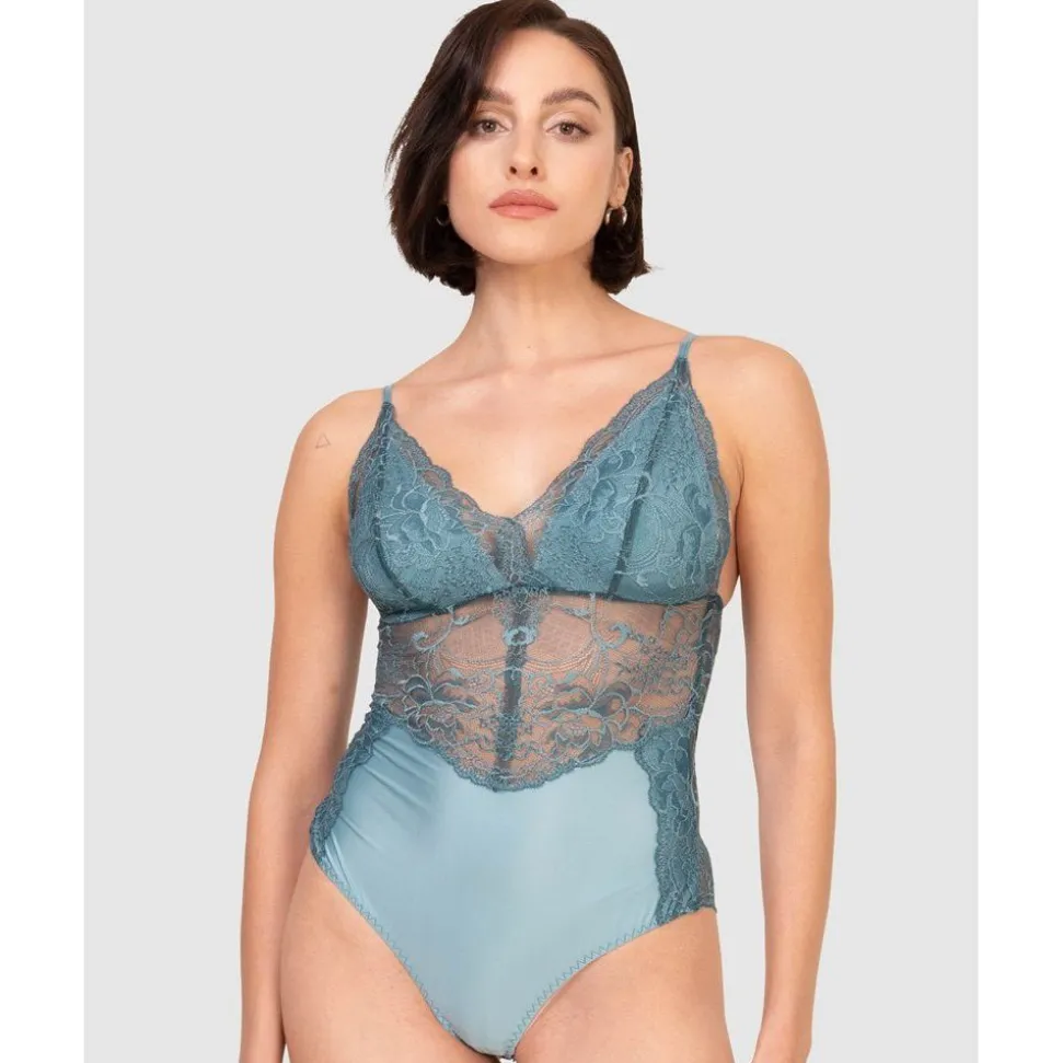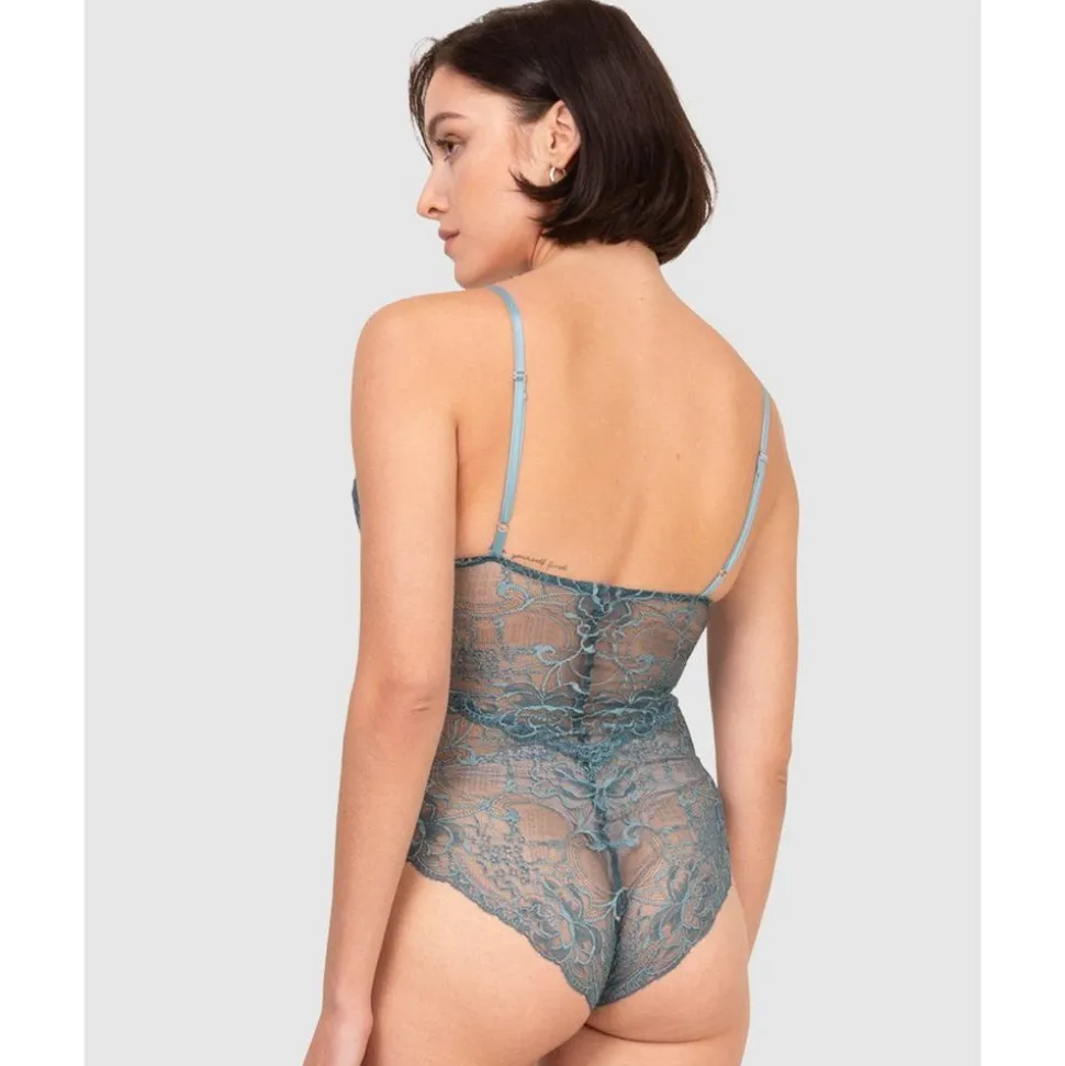 Adorn your body with luxury in this soft lingerie bodysuit, with its lace-detailed front and fully sheer lace back. It’s a V neck bodysuit with lined cups that deliver gentle support, and features narrow, adjustable satin straps for the perfect fit.