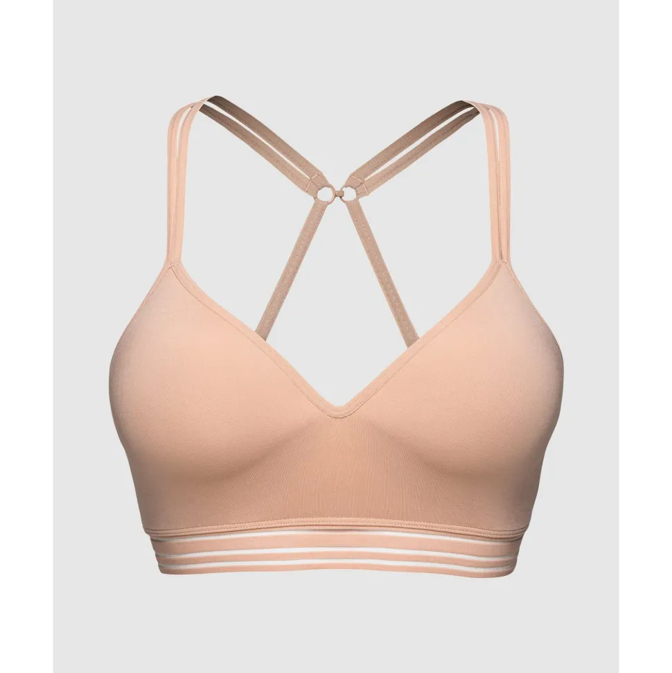 The ultimate supportive yet lightweight bra for everyday wear, this pull-on design is fastening free and has multiway double straps that allow it to optionally be worn as a racerback bra. Moulded cups and seamless sides ensure a perfectly smooth shape under your clothing, and it’s finished with a sheer-striped longline band for a modern touch.