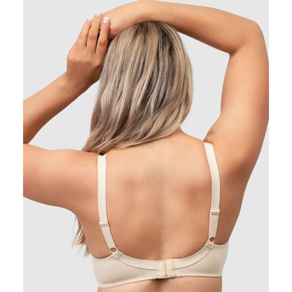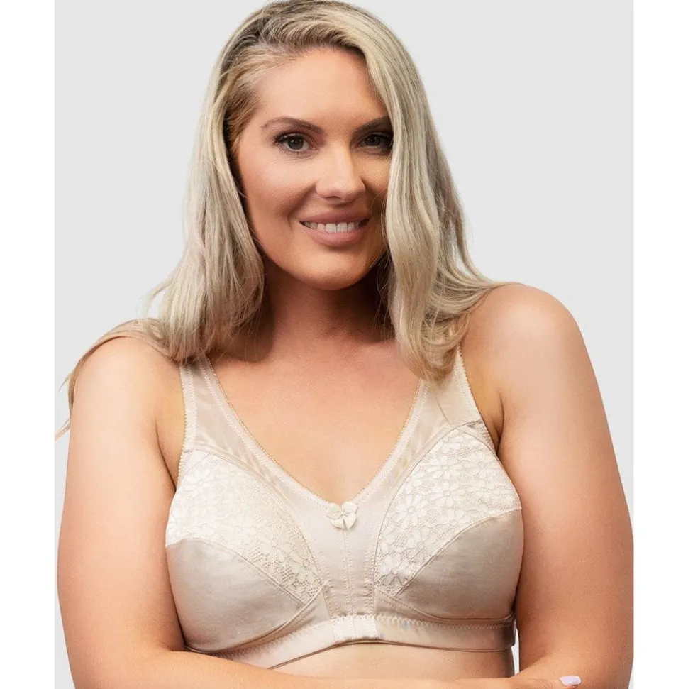 Get optimal support that’s exceedingly comfortable with this soft cup bra, which is designed with a tall band, tall centre front and wide straps to deliver secure hold and effectively redistribute the weight of your bust. As well as being highly supportive, this wirefree bra is also elegant and feminine thanks to the panels of floral lace which sweep across the upper cup.