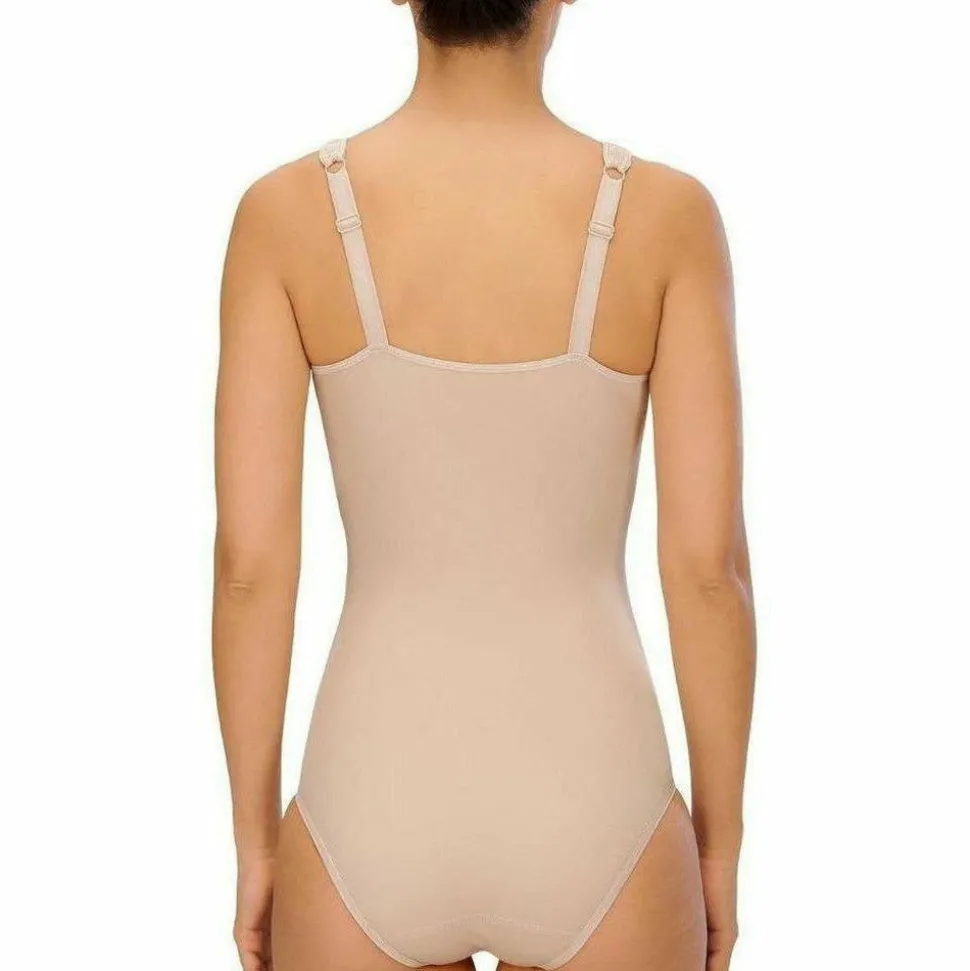 This Naturana bodysuit features moulded, non underwired cups and provides a smooth silhouette. It has a double tummy control panel and back control panel for shaping and support. There is a small embellishment detail at the front centre. It has wide comfortable straps and a cotton gusset lining.